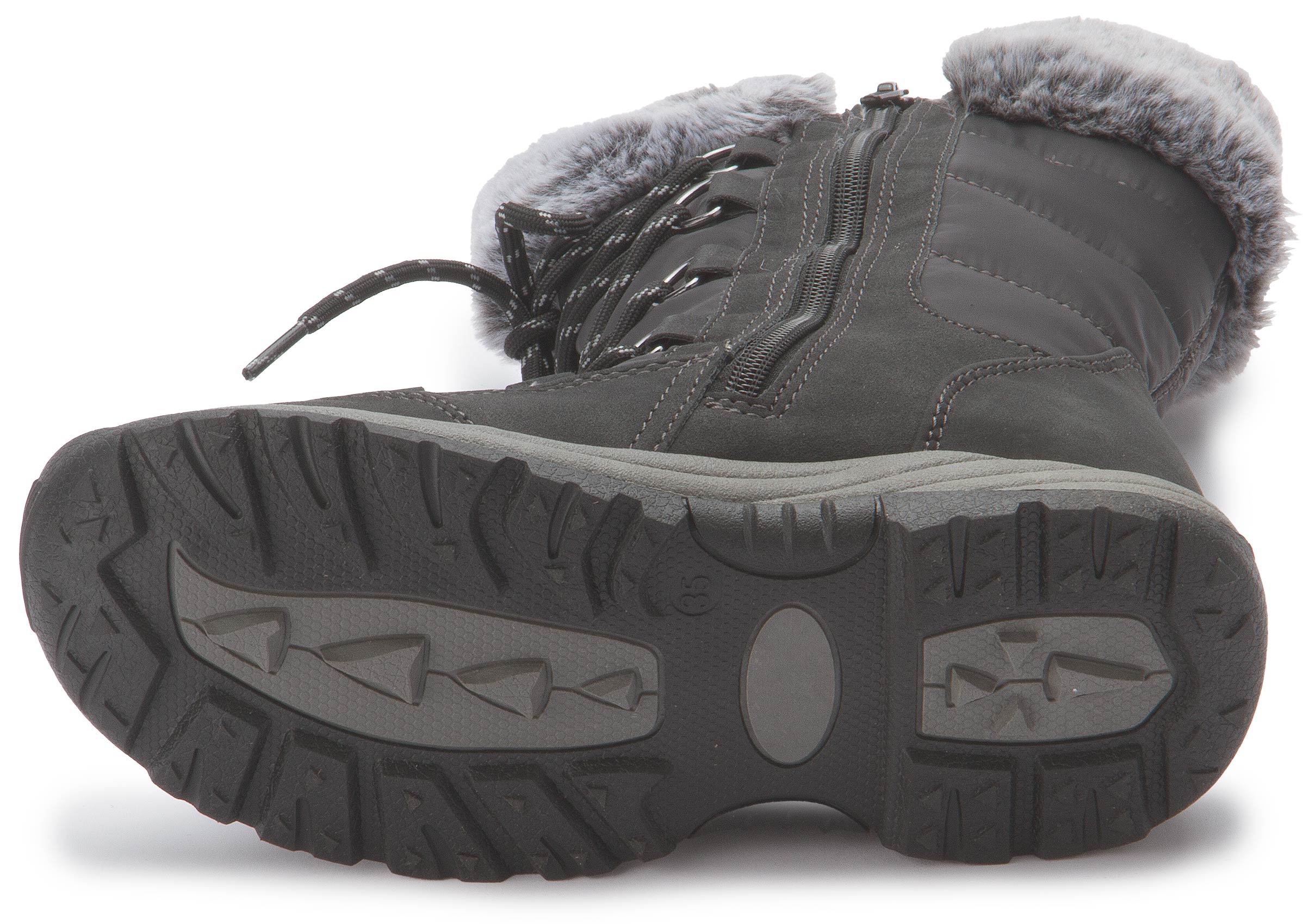 The cold weather can come with this winter boot! The cozy textile lining keeps your feet warm, while the upper material fights wind and moisture. The zipper makes it easy to put on and take off. The treaded sole ensures a firm footing.