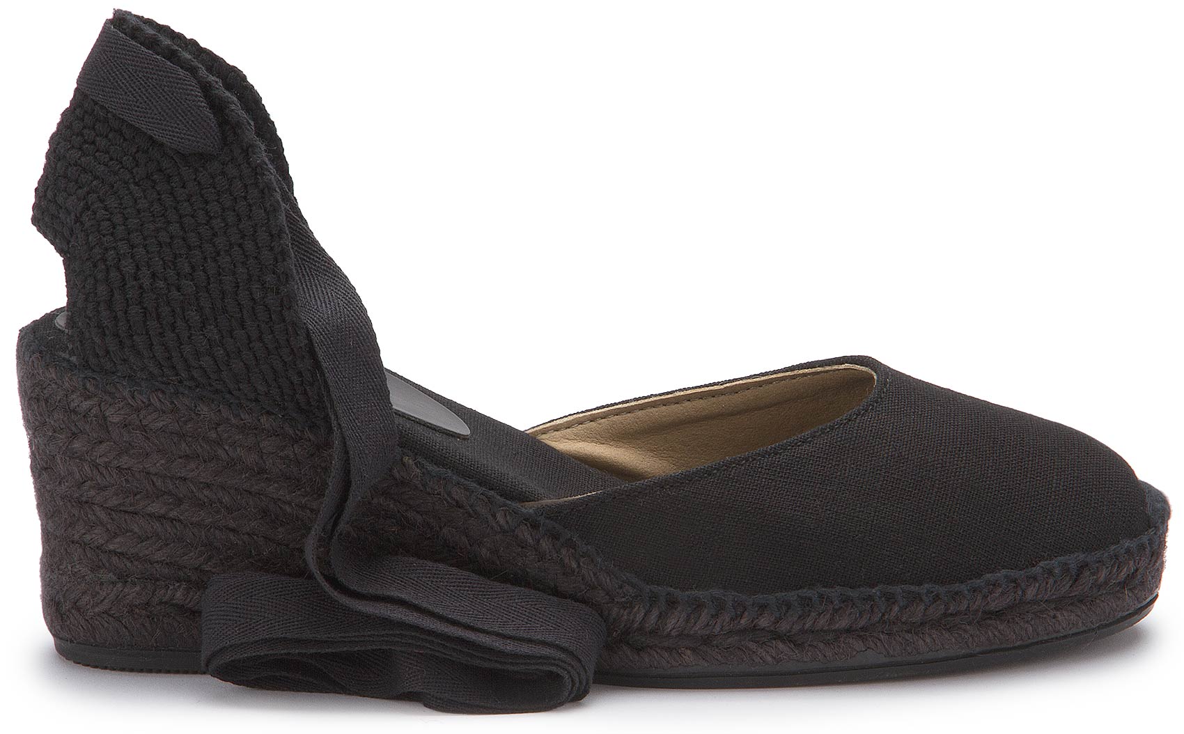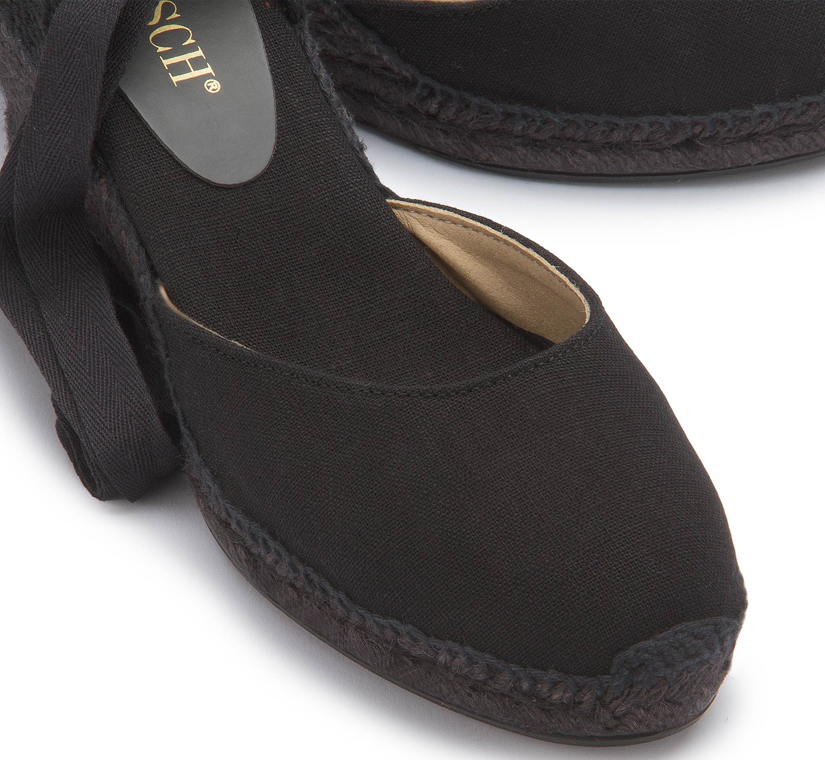 Diese schwarzen Espadrilles vereinen klassischen Stil mit sommerlicher Leichtigkeit. Das edle Obermaterial und die eleganten Bindebänder setzen stilvolle Akzente, während der geflochtene Keilabsatz für hohen Tragekomfort sorgt. Perfekt für schicke Sommer-Looks oder besondere Anlässe!