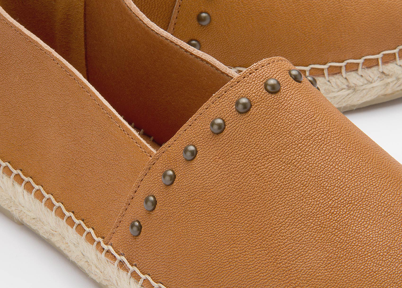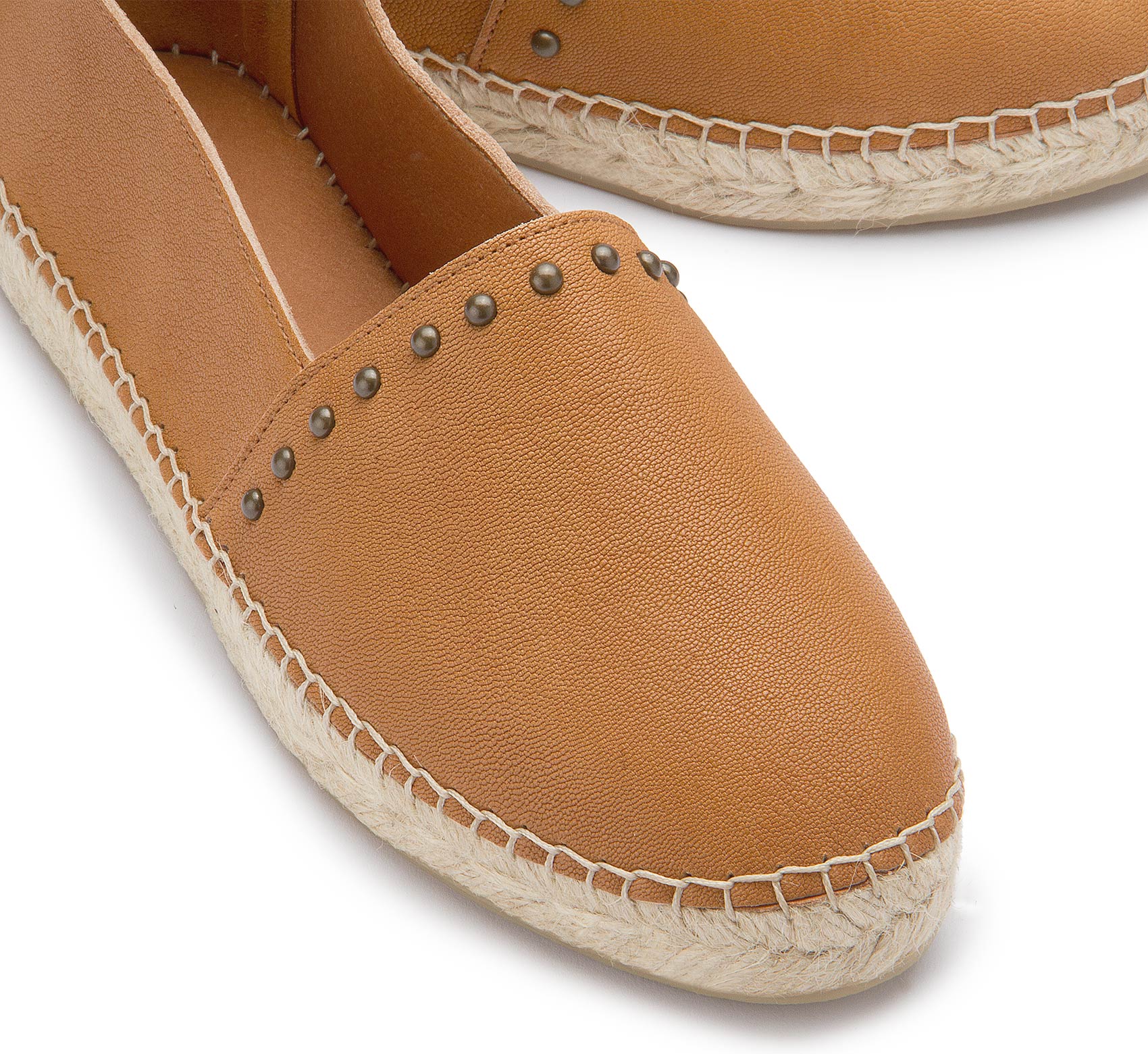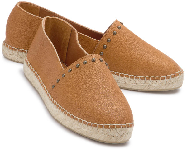 Diese braunen Espadrilles vereinen zeitlose Eleganz mit modernem Komfort. Das hochwertige Obermaterial wird durch dezente Nieten stilvoll ergänzt, während die geflochtene Sohle für ein angenehm leichtes Tragegefühl sorgt. Perfekt für einen lässig-eleganten Look!