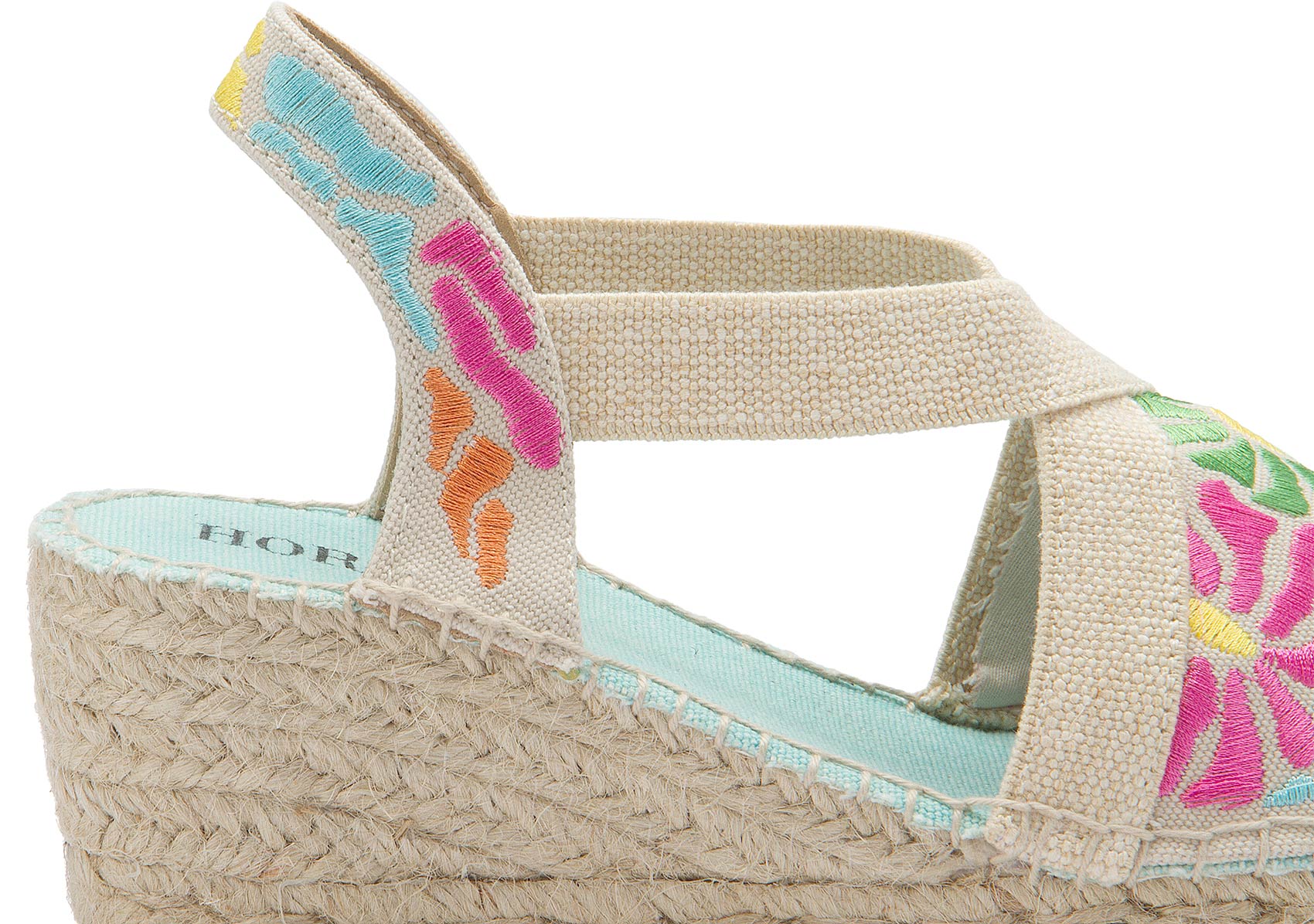 Diese eleganten Espadrilles vereinen sommerlichen Komfort mit farbenfrohem Design. Der bestickte Leinenstoff mit floralen Mustern verleiht den Schuhen eine frische, feminine Note, während der geflochtene Keilabsatz für einen bequemen und stilvollen Auftritt sorgt. Perfekt für warme Tage und einen Hauch von mediterranem Flair!