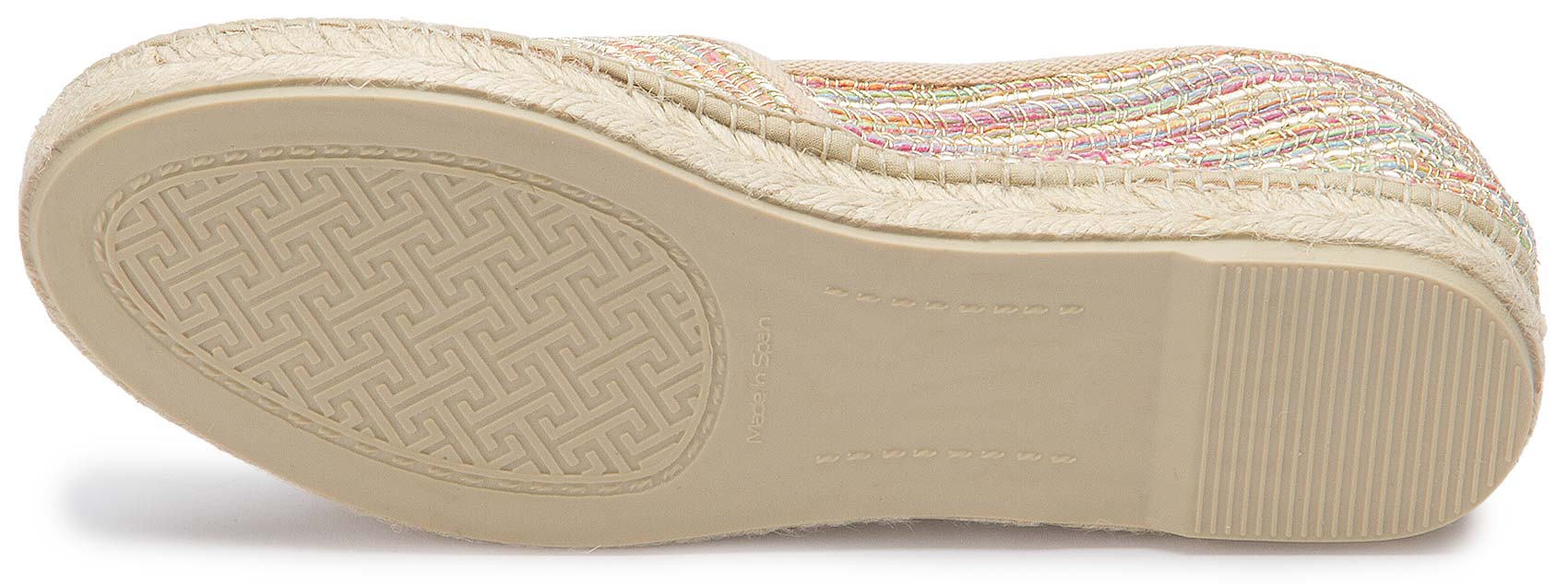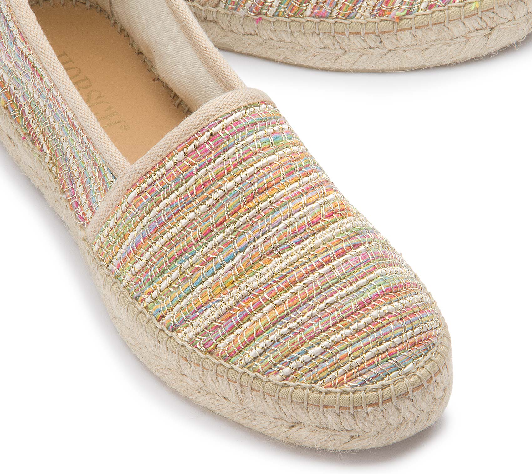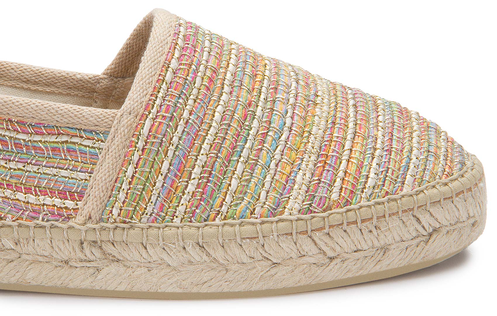 Diese sommerlichen Espadrilles überzeugen mit ihrem leichten Slip-on-Design und dem farbenfrohen, fein gewebten Obermaterial. Die typische Jute-Sohle sorgt für einen natürlichen Look und angenehmen Tragekomfort. Perfekt für entspannte Tage und stilvolle Casual-Outfits.