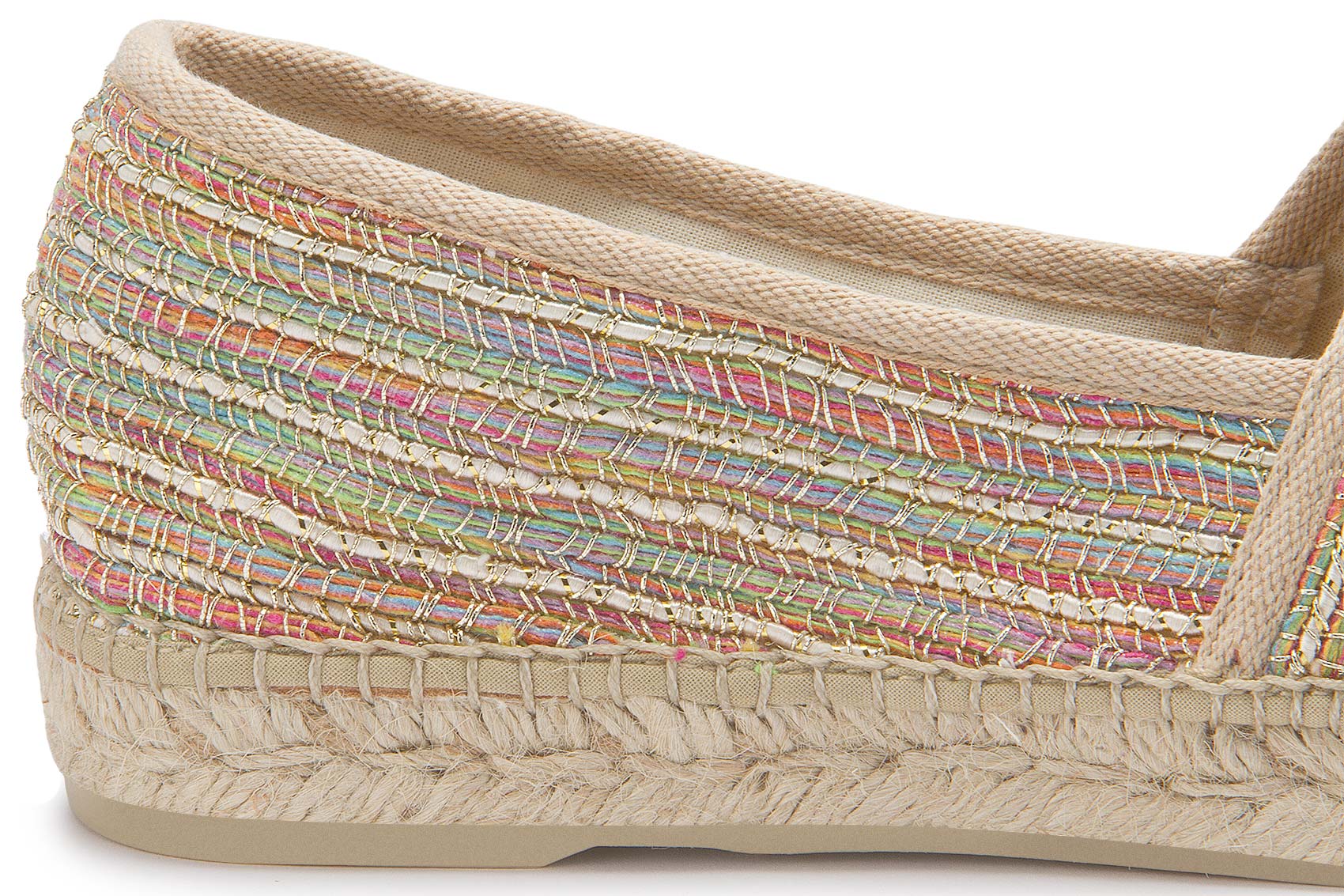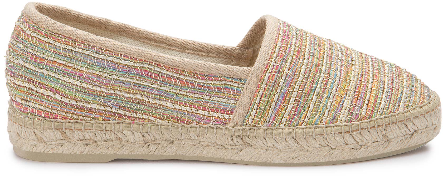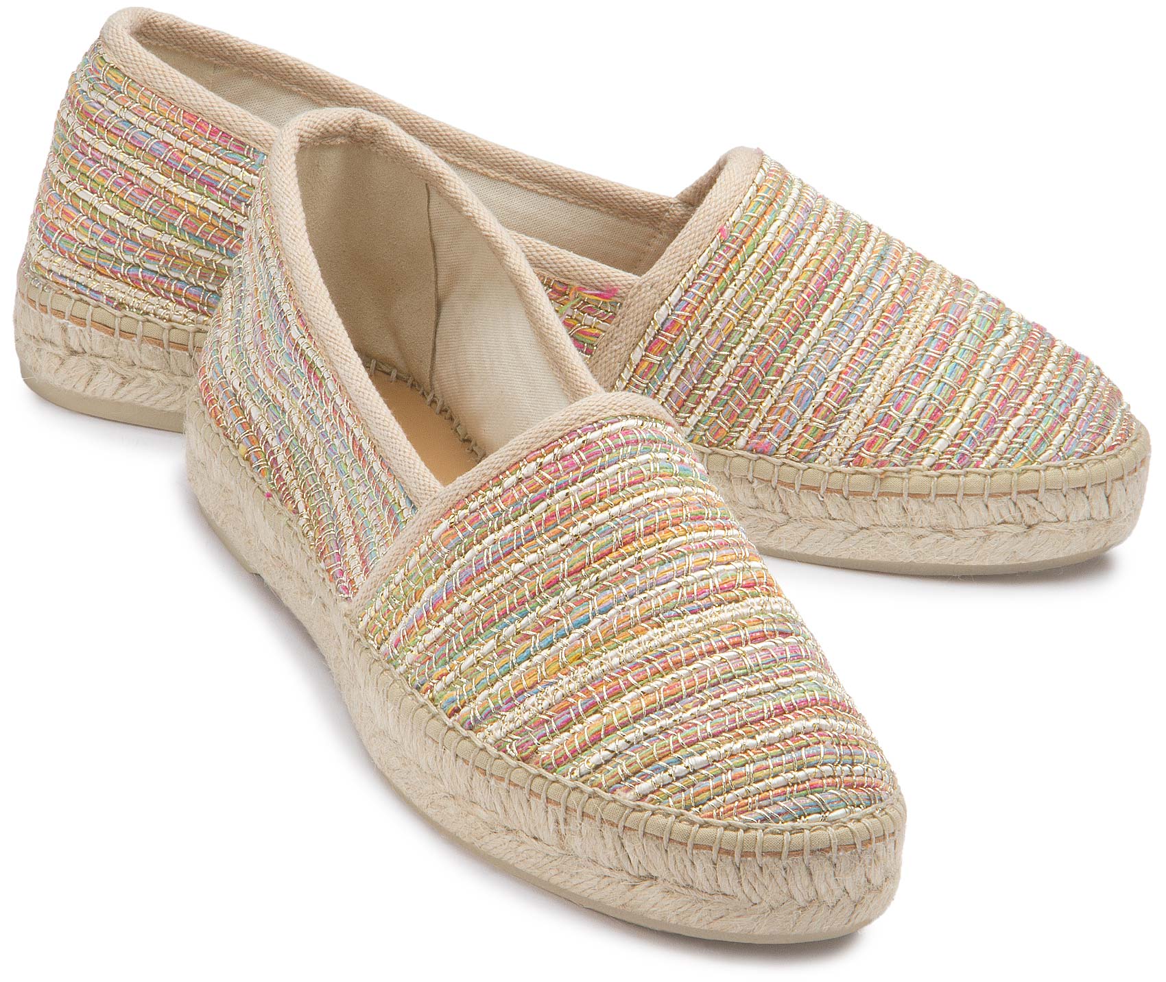 Diese sommerlichen Espadrilles überzeugen mit ihrem leichten Slip-on-Design und dem farbenfrohen, fein gewebten Obermaterial. Die typische Jute-Sohle sorgt für einen natürlichen Look und angenehmen Tragekomfort. Perfekt für entspannte Tage und stilvolle Casual-Outfits.
