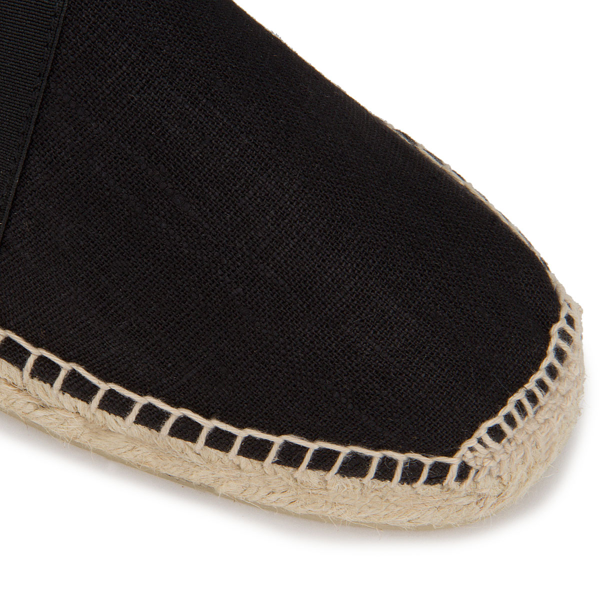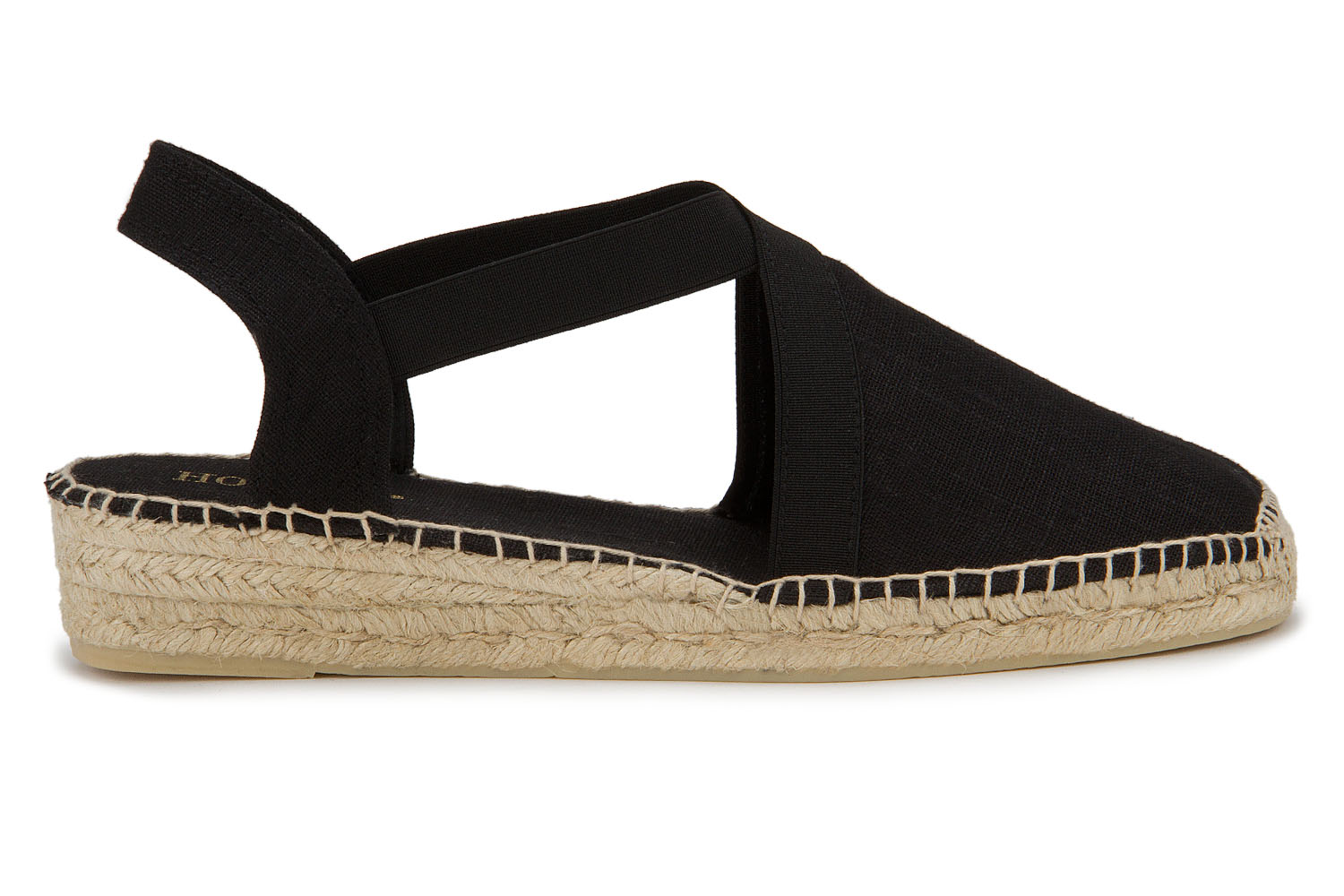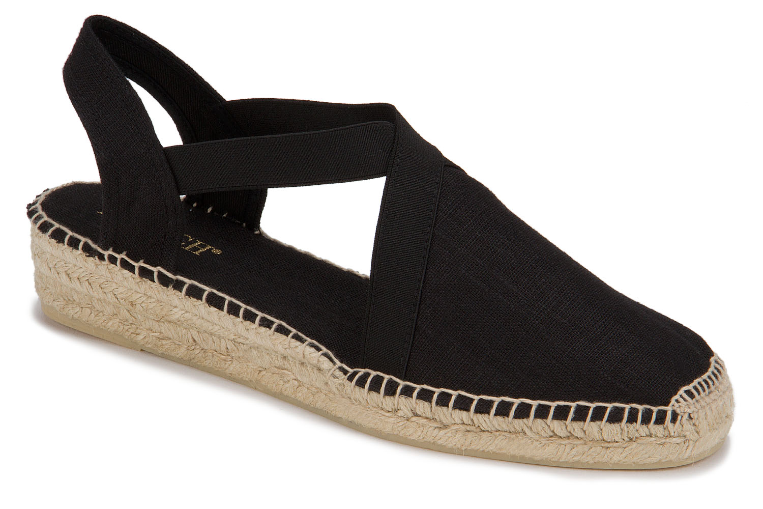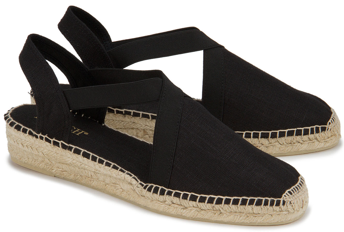 Spielen eine Hauptrolle in der kommenden Saison: Espadrilles hochwertiger Verarbeitung! Das Damenmodell präsentiert sich mit charakteristischem Keilabsatz aus Natur-Bast. Elastische Bänder ermöglichen das einfache An- und Ausziehen, während die leicht gepolsterte Sohle einen hervorragenden Tragekomfort verspricht. Made in Spain.