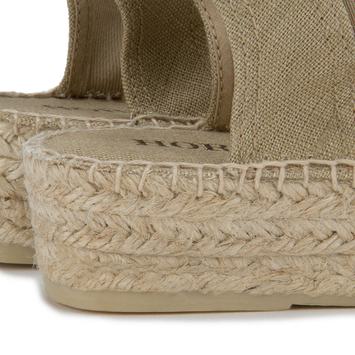 Spielen eine Hauptrolle in der kommenden Saison: Espadrilles hochwertiger Verarbeitung! Das Damenmodell präsentiert sich mit charakteristischem Keilabsatz aus Natur-Bast. Elastische Bänder ermöglichen das einfache An- und Ausziehen, während die leicht gepolsterte Sohle einen hervorragenden Tragekomfort verspricht.