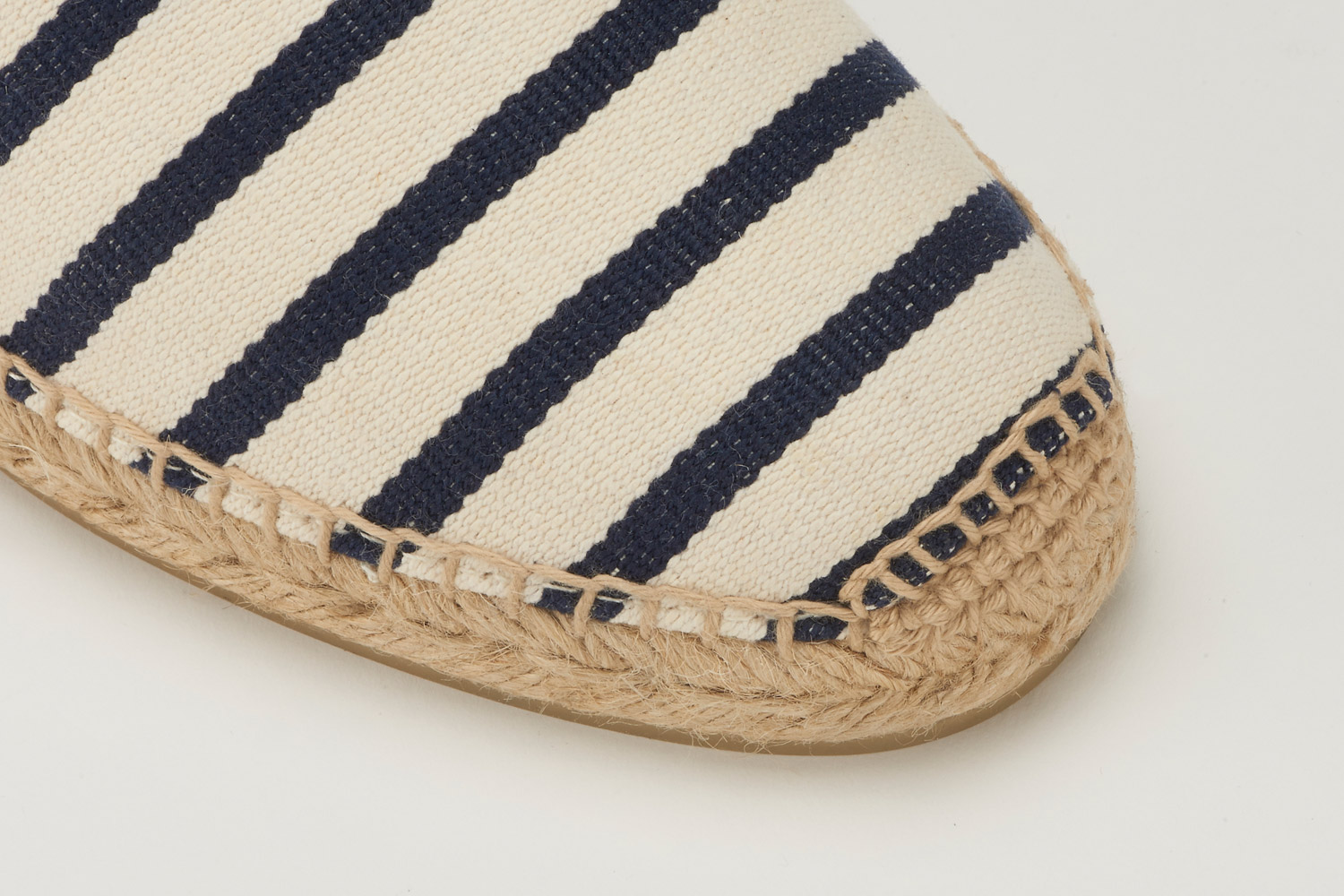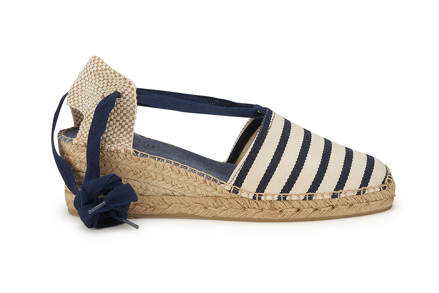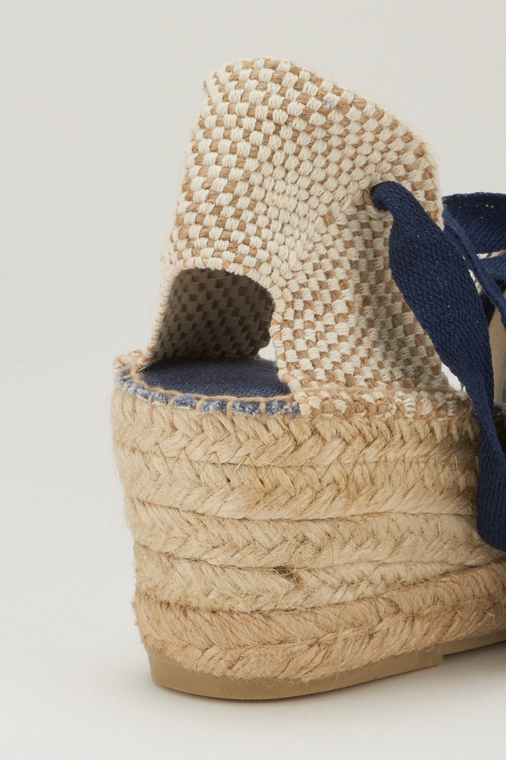 Sie gehört einfach zum Sommer dazu! Keil-Sandalette aus Leinen in Weiß/Blau kombiniert mit einer hellen Ferse. Der Schnürungsverlauf sorgt für den perfekten Sitzkomfort. Sie begeistert mit ihrem Design und jeder Schritt wird zum Vergnügen.
