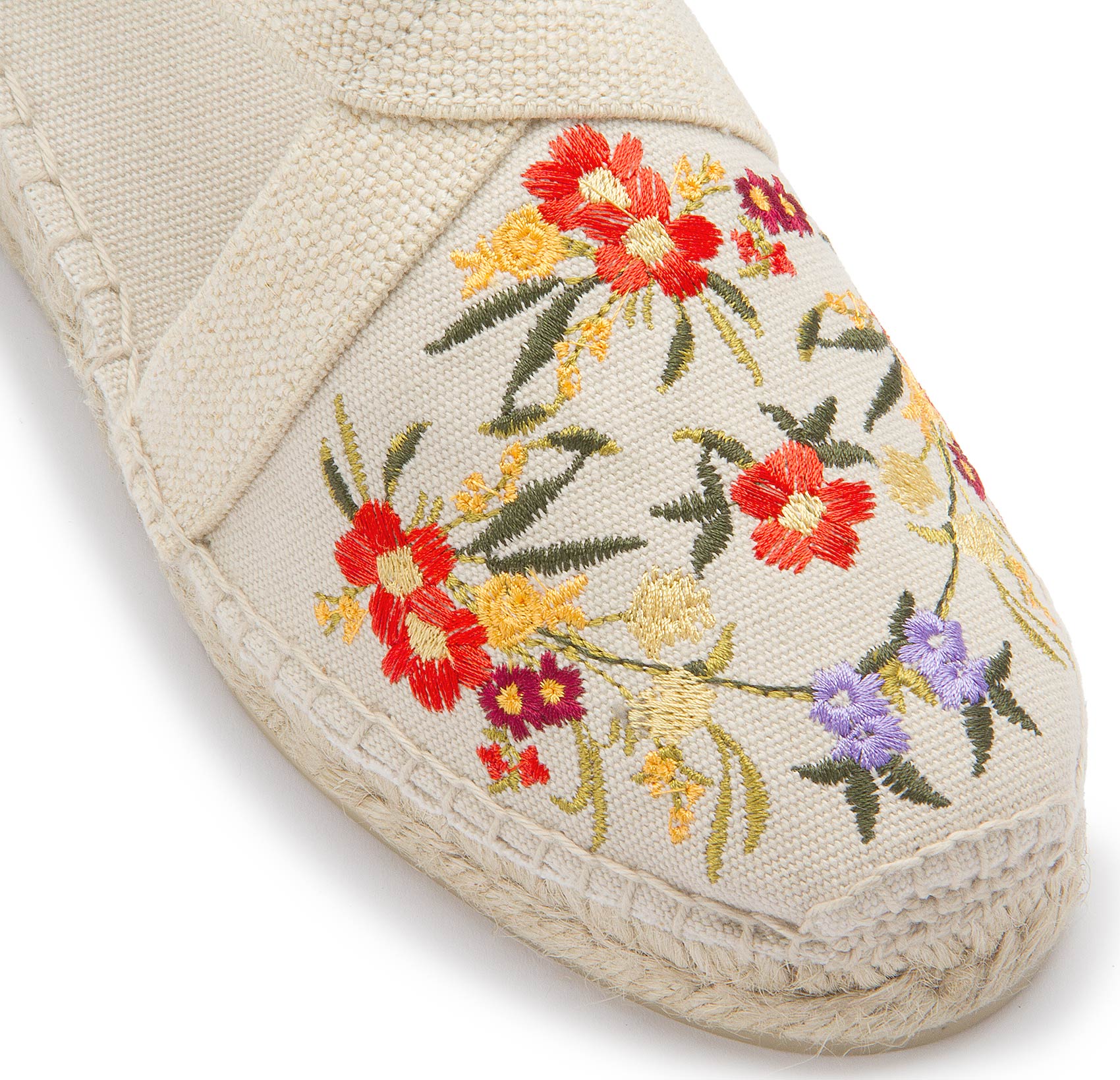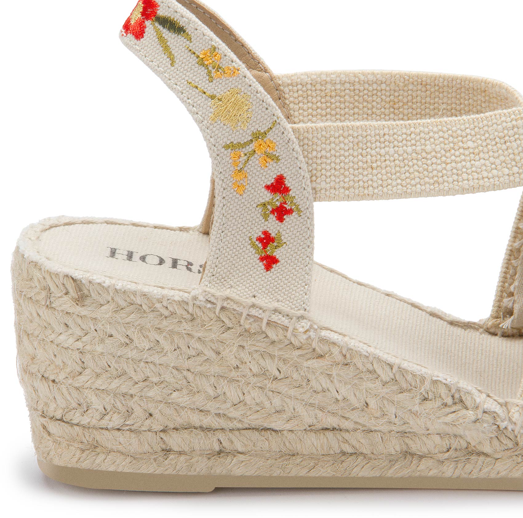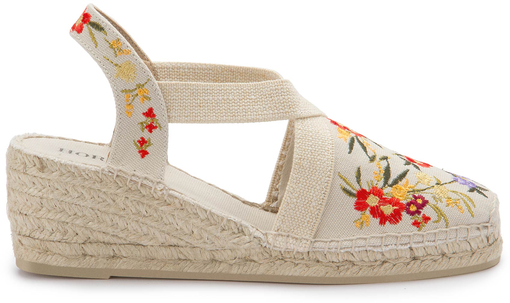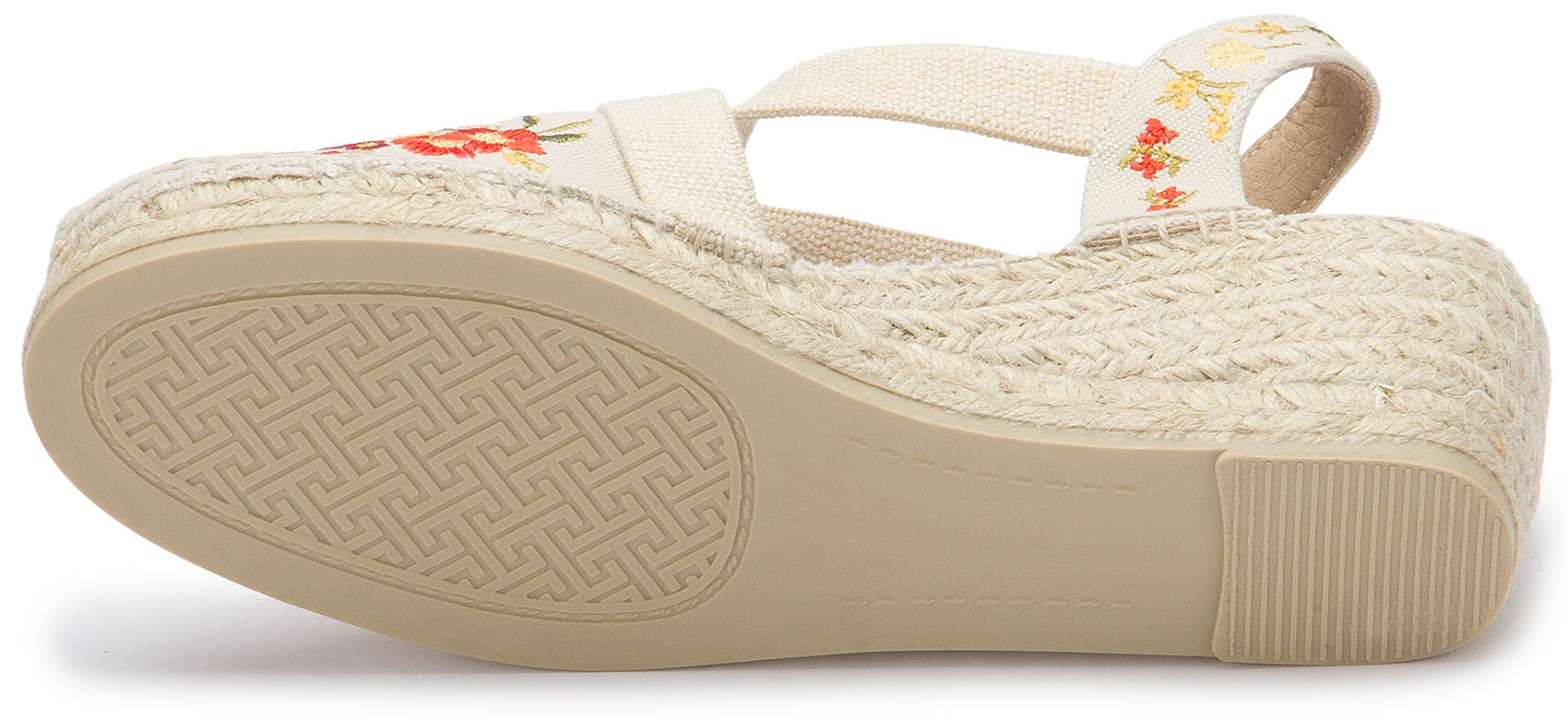 Diese eleganten Espadrilles vereinen sommerlichen Komfort mit farbenfrohem Design. Der bestickte Leinenstoff mit floralen Mustern verleiht den Schuhen eine frische, feminine Note, während der geflochtene Keilabsatz für einen bequemen und stilvollen Auftritt sorgt. Perfekt für warme Tage und einen Hauch von mediterranem Flair!