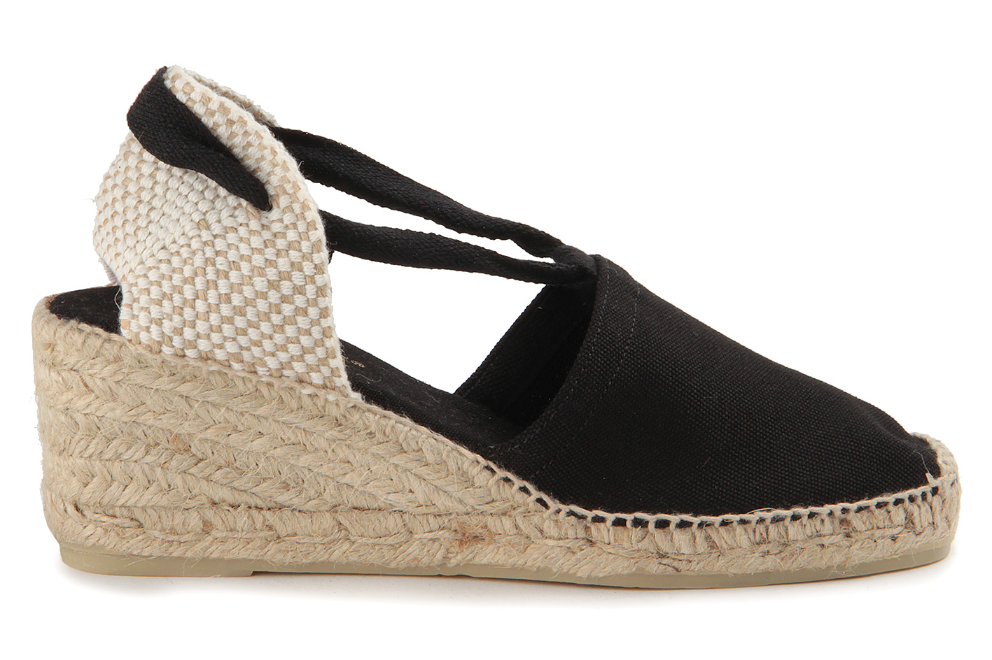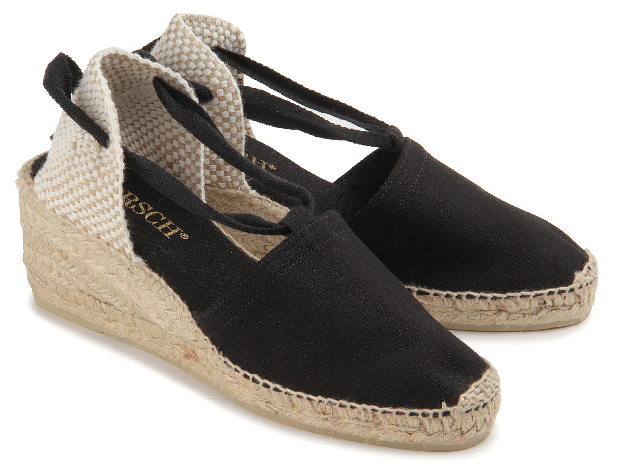 Sie gehört einfach zum Sommer dazu! Keil-Sandalette aus Leinen in Schwarz kombiniert mit einer hellen Ferse. Der Schnürungsverlauf sorgt für den perfekten Sitzkomfort. Sie begeistert mit ihrem Design und jeder Schritt wird zum Vergnügen. Ca. 50 mm Bast-Keilabsatz, Gummisohle.