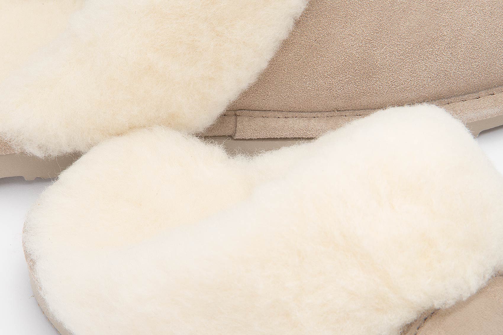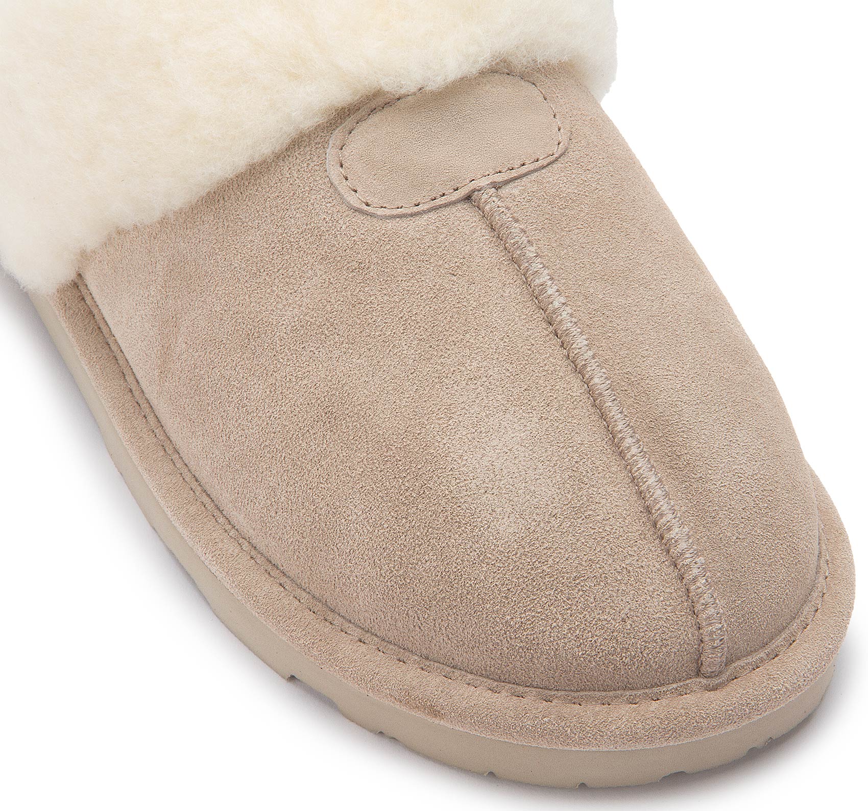 Mit diesem Modell startet man gut in den Tag. Diese kuscheligen Damenhausschuhe haben ein Obermaterial aus weichem Wildleder mit einem Schaffellkragen, der pflegeleicht ist und höchsten Komfort bietet. Das Schaffellfutter reguliert die Körpertemperatur, um Ihre Füße warm zu halten, und das Schaffell-Fußbett sorgt für zusätzliche Weichheit und reduziert die Ermüdung der Füße. Die strapazierfähige Laufsohle macht den Damenschuh zur perfekten Wahl für drinnen und draußen.