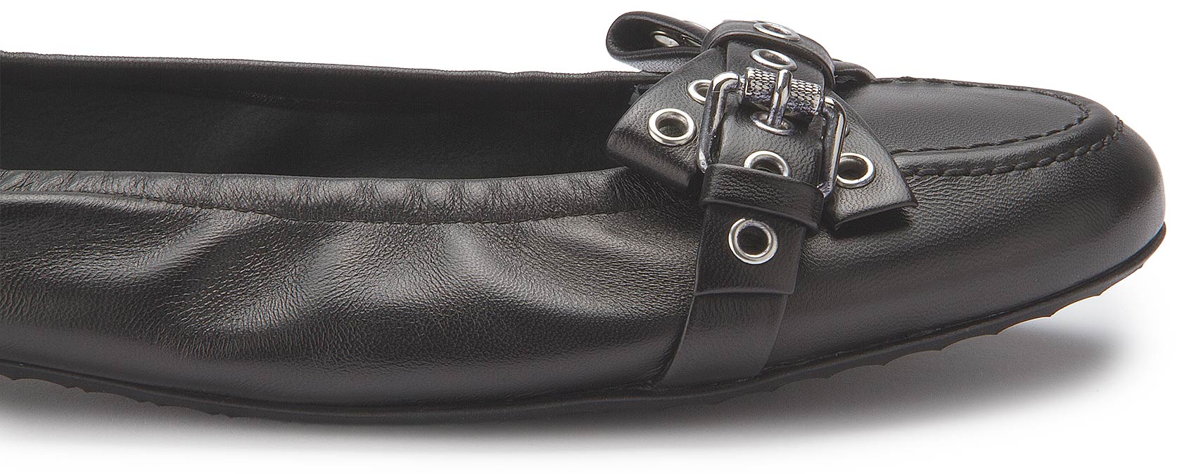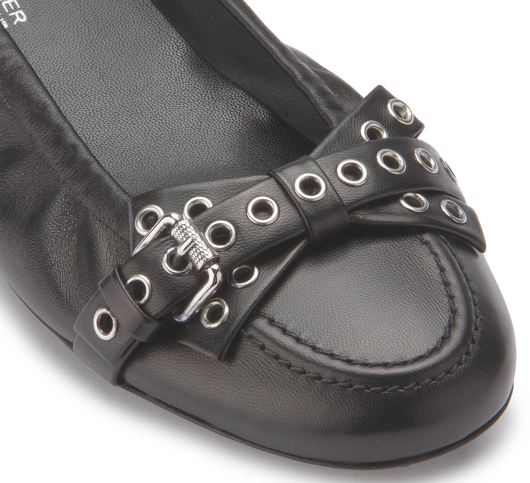 Moderne Akzente treffen auf klassisches Design. Dieser Ballerina sorgt mit seiner modernen und sportiven Schließe für einen angesagten Look. Die Verarbeitung aus schwarzem Glattledersorgt für besten Tragekomfort und ein zeitloses Design. Die Bequemlichkeit ist bei diesem Kennel & Schmenger Ballerina Klassiker durch den passformoptimierenden Gummizug garantiert!