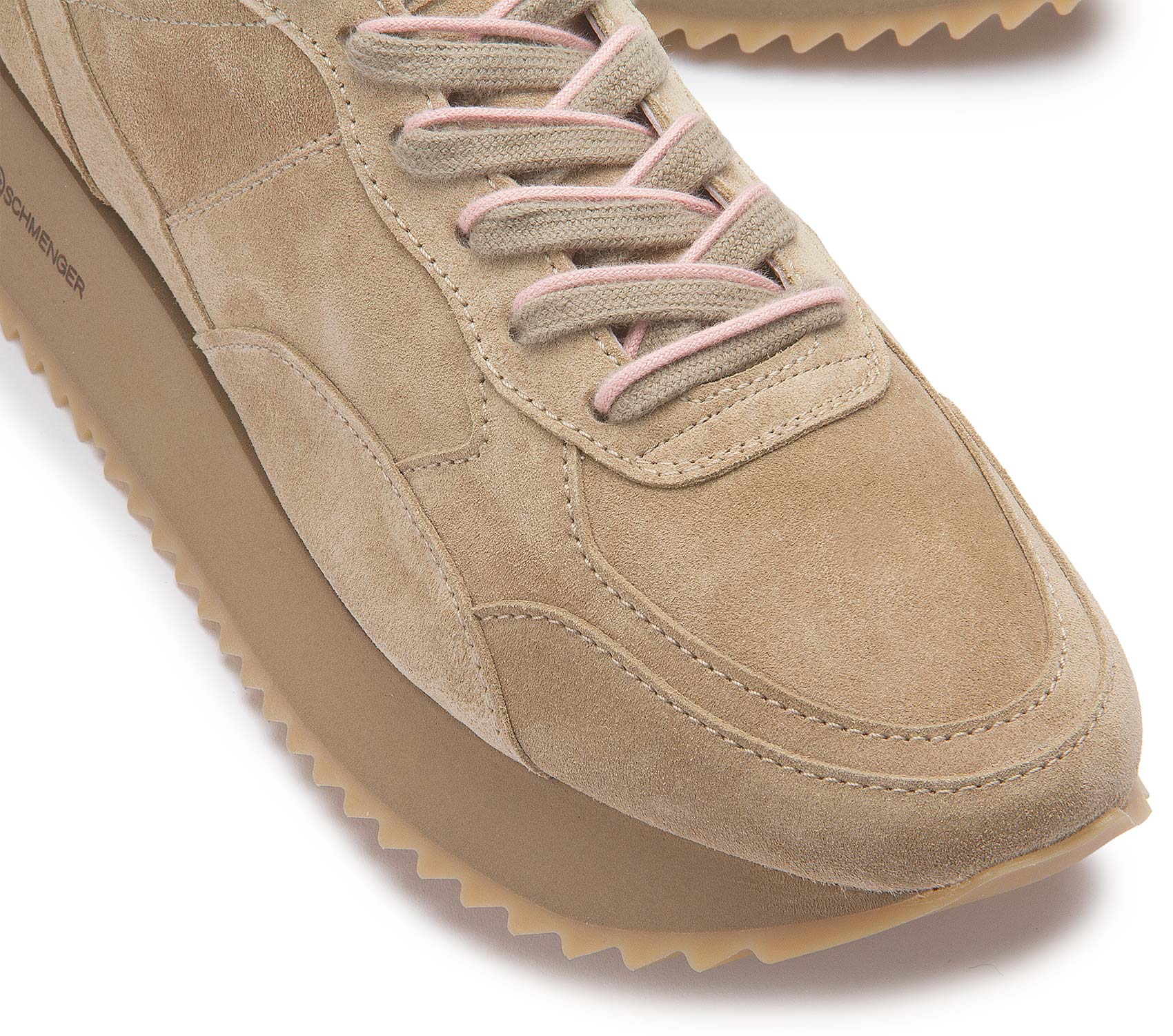 Setze ein modisches Statement – mit diesem Sneaker in edlem Beige, der durch zarte pinke Details einen frischen Akzent erhält. Gefertigt aus hochwertigem Rauleder überzeugt er mit einer gleichmäßig edlen Oberfläche und einem stilvollen Auftritt. Die sportive Sohle verleiht dem Schuh einen modernen Charakter und sorgt gleichzeitig für ein angenehmes Tragegefühl – perfekt für den urbanen Alltag.