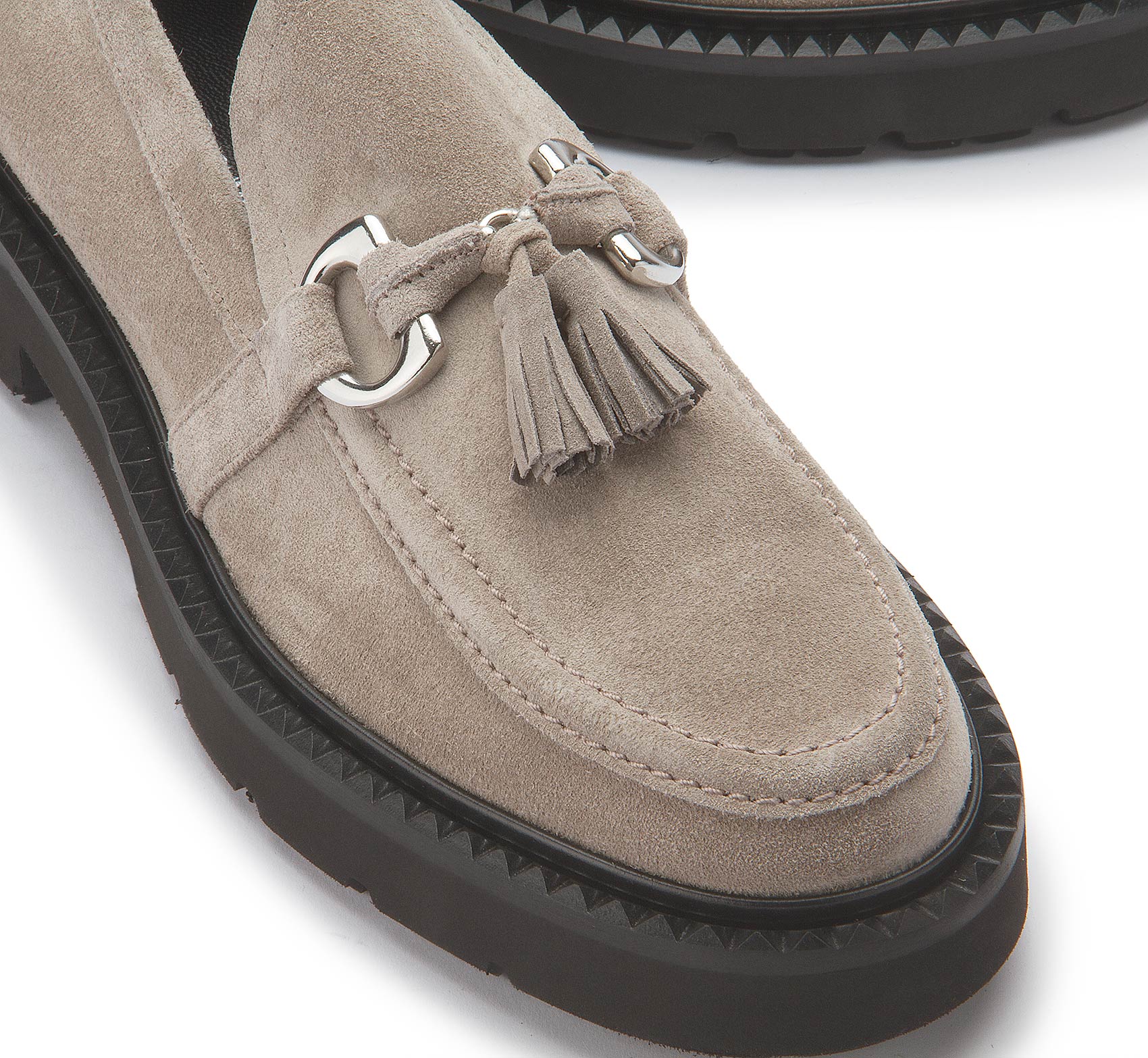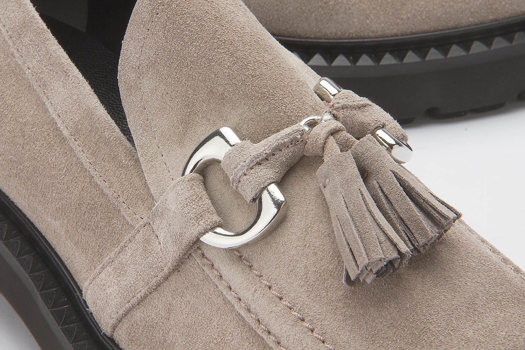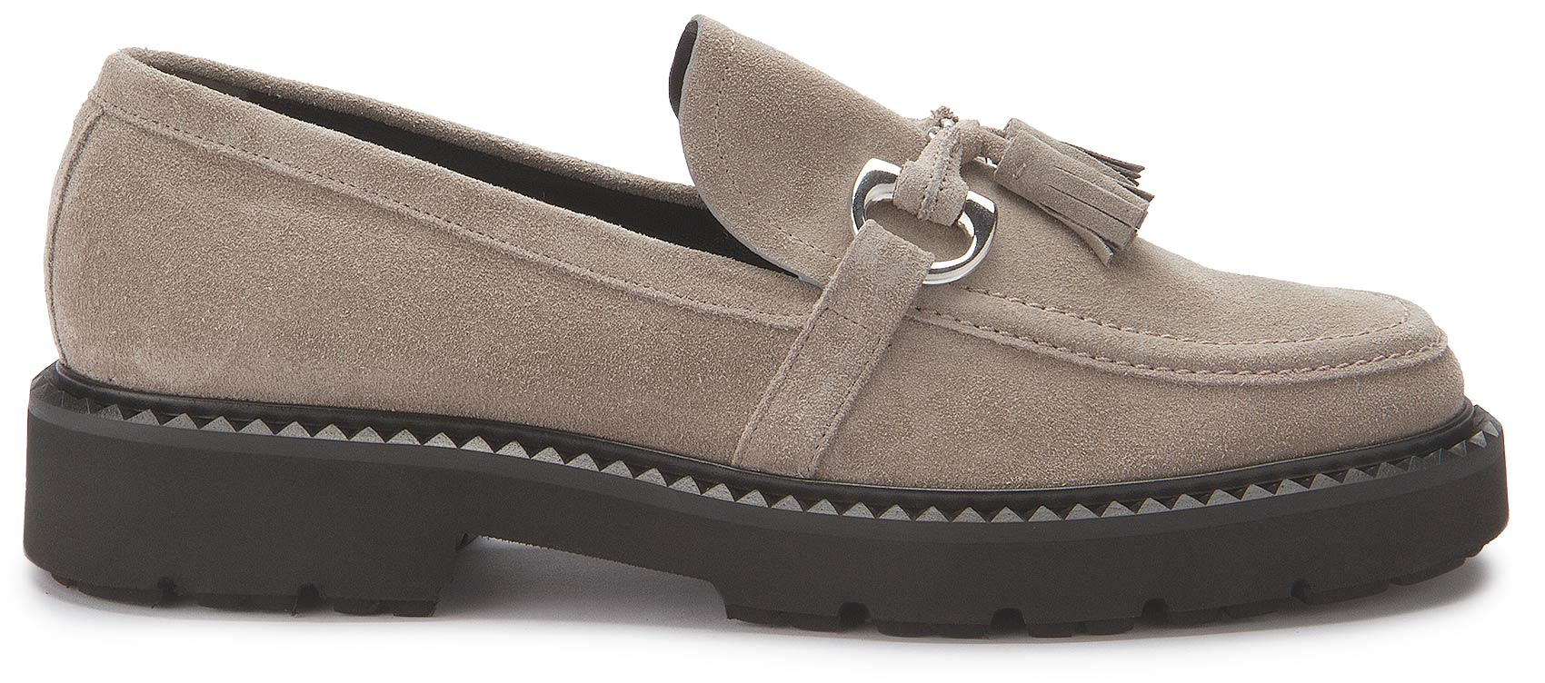 Dieser lässiger Loafer von Kennel & Schmenger überzeugt mit einer prägnanten Plateau-Sohle. Diese sorgt für besten Tragekomfort und einen trendigen Look. Besonders in Kombination zur verkürzten Jeans wird dieses Modell zum modischen Blickfang. Ein Highlight ist die silberne Schnalle welche mit Lederquasten versehen wurde. Dank des zeitlosen Looks haben Sie noch viele weitere Saisons Freude an diesem Loafer.