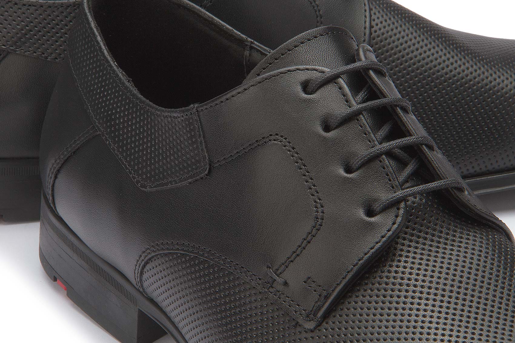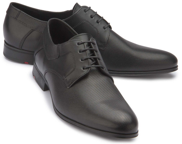 Durch einen modischen Eye-Catcher überzeugen die LLOYD Derby Schuhe aus schwarzem Leder. Ein klassisches und elegantes Auftreten ist mit dem Herrenschuh gegeben. Die elastische Gummisohle federt den Auftritt beim Gehen ideal ab. Zudem verleiht die innenliegende Ledersohle ein hohes Wohlfühlpotenzial. Die Schnürung und das modisch geprägte Leder sorgen für eine originelle Optik und die perfekte Passform. Die leder- und textilgefütterten Schuhe sind komfortabel und atmungsaktiv.