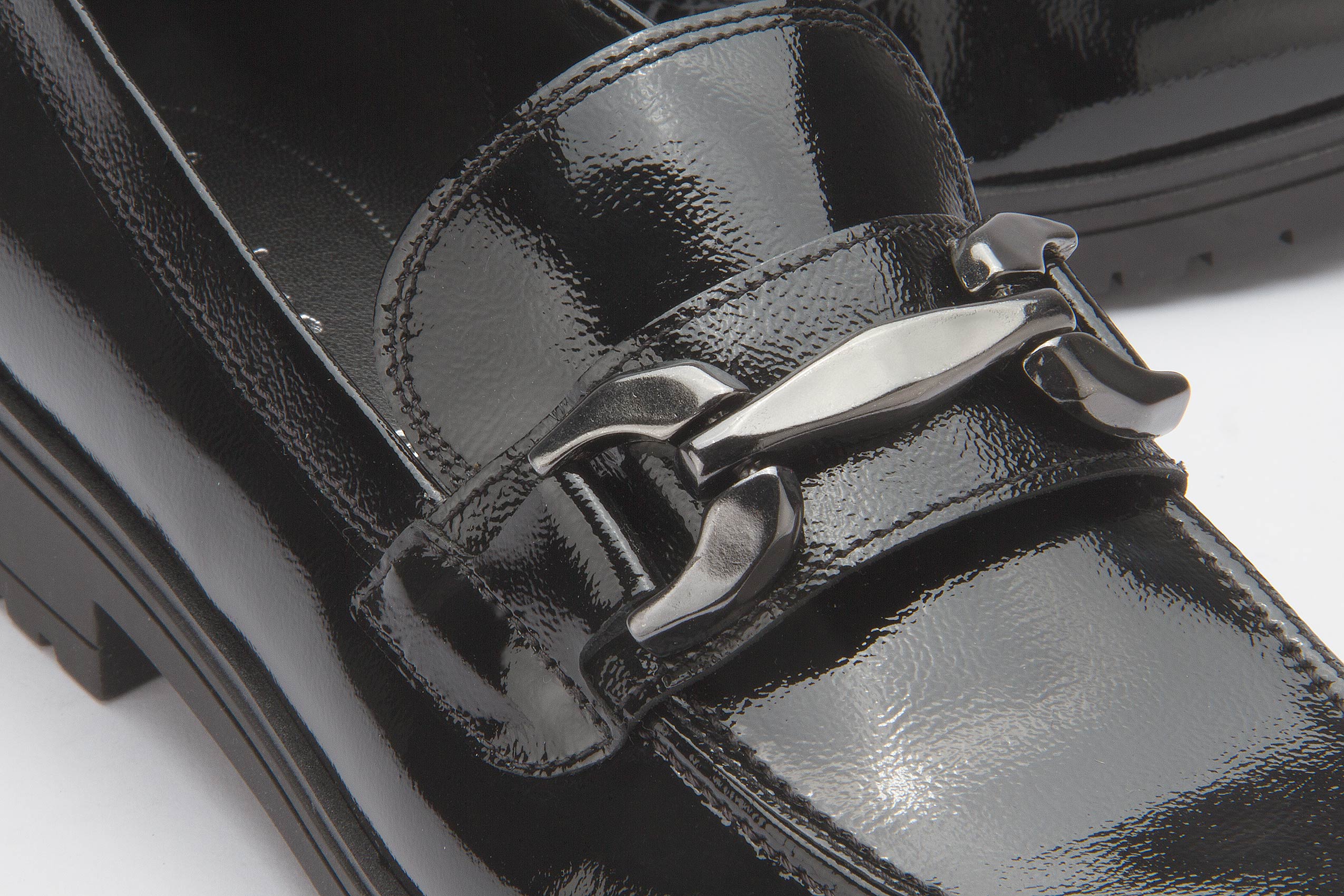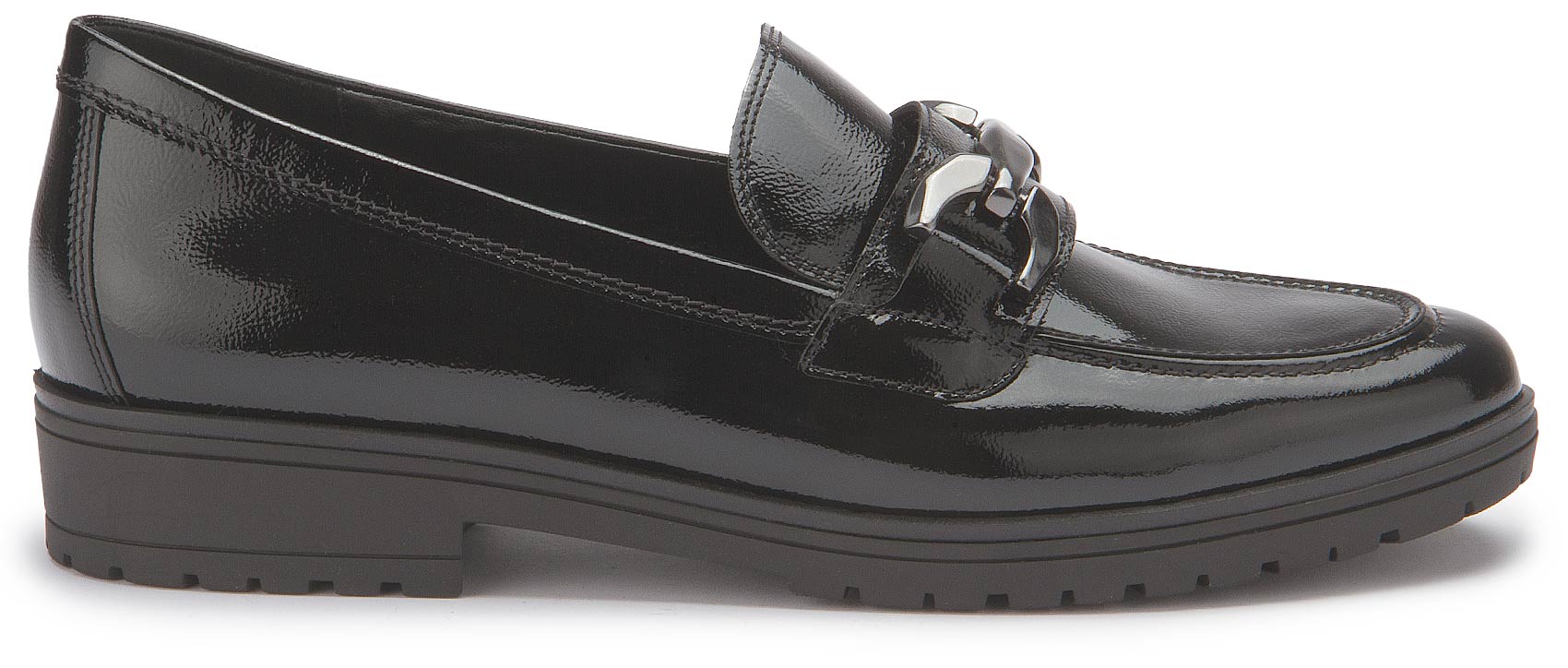 Gabor begeistert mit einem neuen Schuhmodell! Der Loafer aus hochwertigem Lackleder ist ein absoluter Blickfang. Das angenehme Material und das Innenfutter aus Leder garantieren maximalen Tragekomfort. Die altsilberne Trense verleiht dem Loafer eine elegante Note und setzt einen stilvollen Akzent. Ein Must-have für jeden, der Komfort und Stil schätzt.