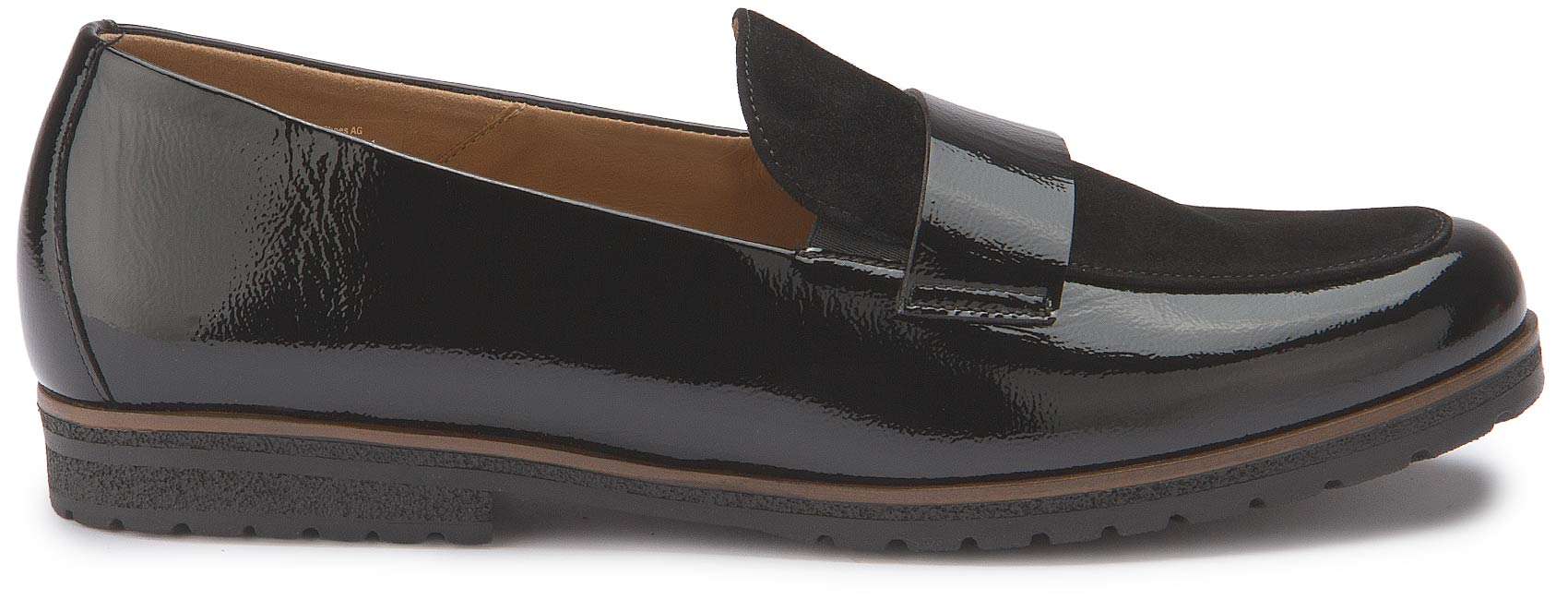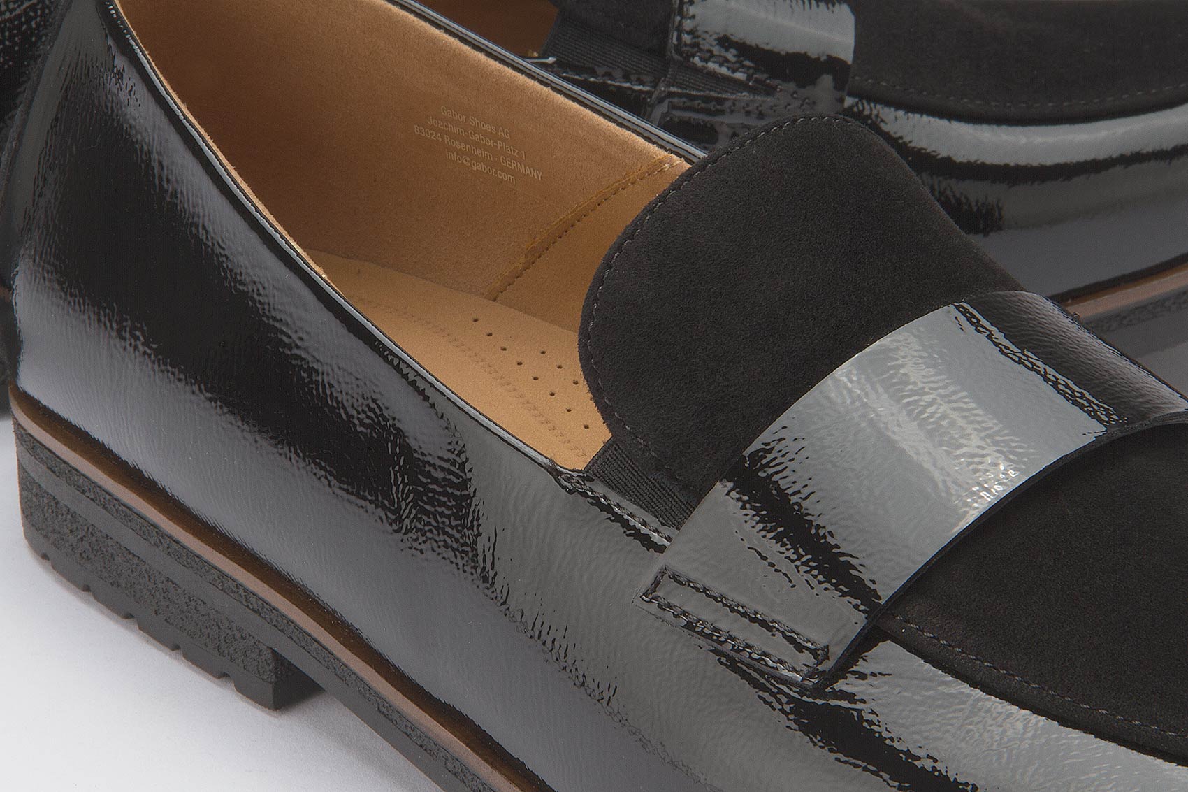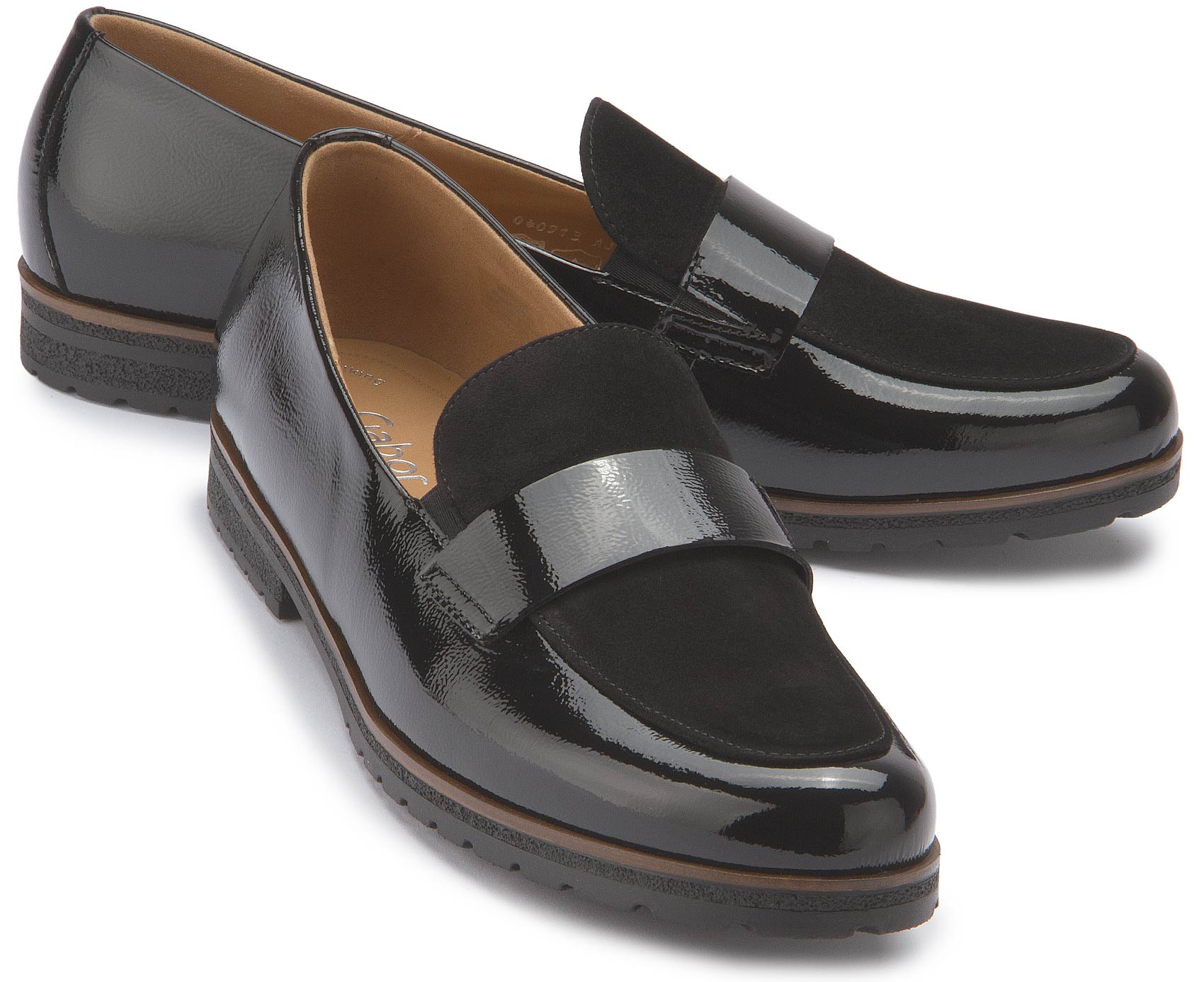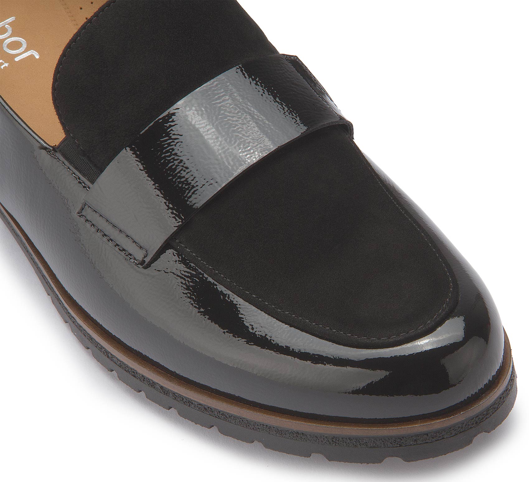 Dieser edle Loafer von Gabor besticht durch die gelungene Kombination aus glänzendem Lackleder und softem Rauleder. Mit Lederfutter ausgestattet bietet er ein angenehm hochwertiges Tragegefühl, während die bequeme G-Weite zusätzlichen Komfort garantiert. Ein stilvoller Begleiter für Alltag und besondere Anlässe.