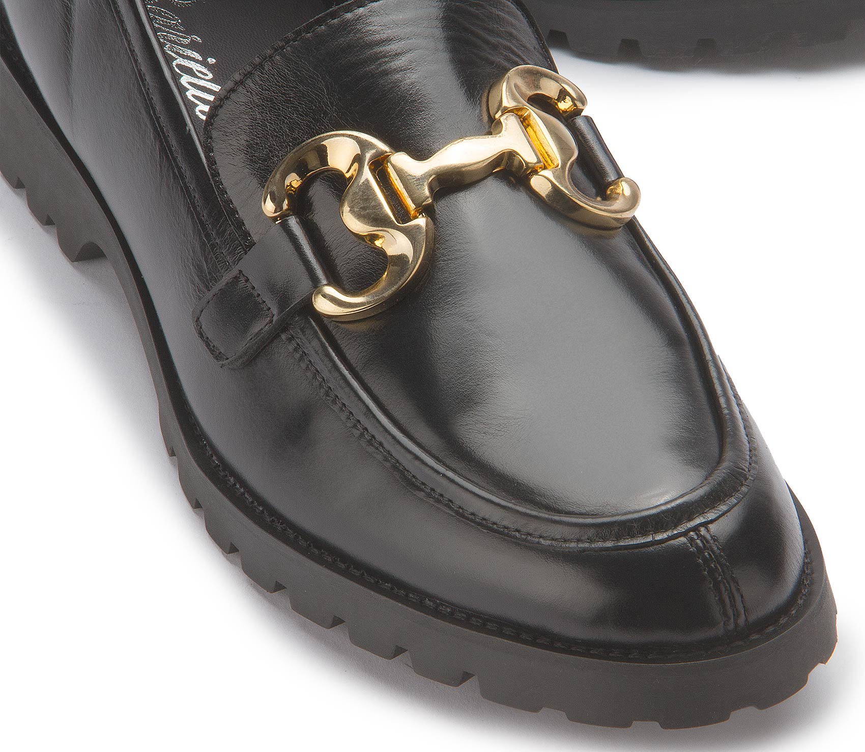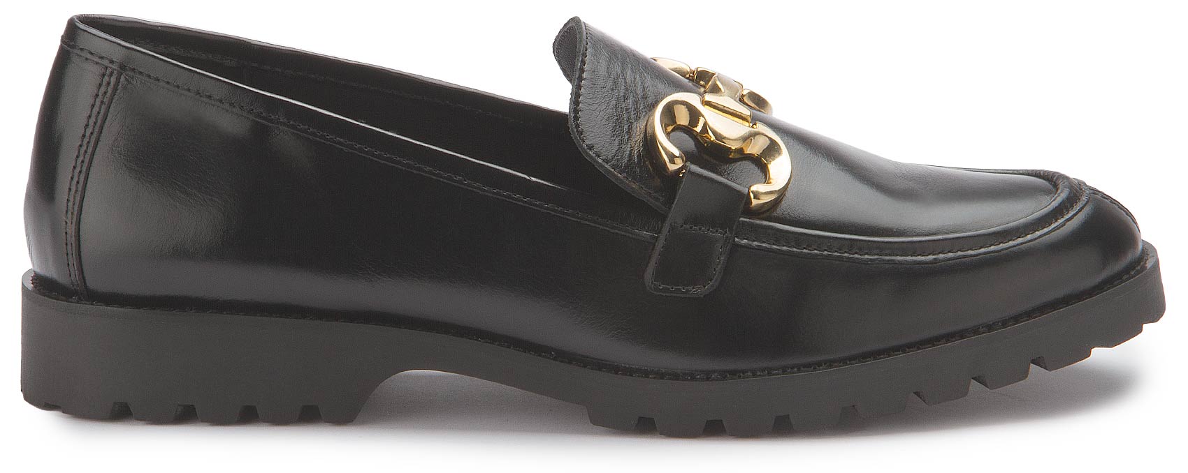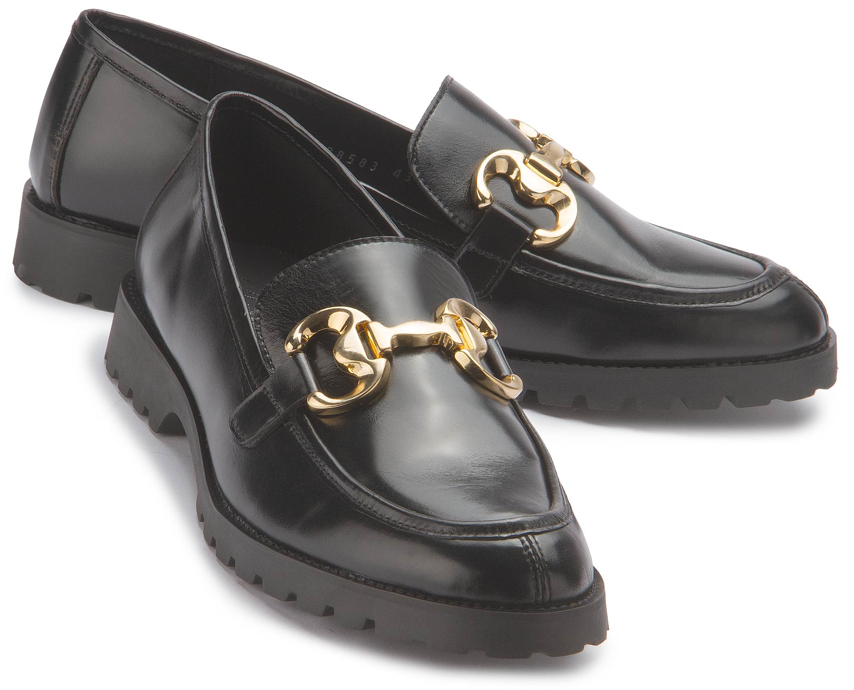 Dieser raffinierte Loafer von Bariello in edlem Schwarz ist der perfekte Herbstbegleiter. Aus hochwertigem Nappaleder gefertigt, vereint er luxuriöse Optik als auch exzellenten Tragekomfort durch das weiche Lederinnenmaterial. Die applizierte goldene Trense auf der Spitze des Schuhs verleiht dem Loafer eine besondere Note und setzt stilvolle Akzente. Ein eleganter und komfortabler Schuh, der Ihre Herbstoutfits stilvoll ergänzt.