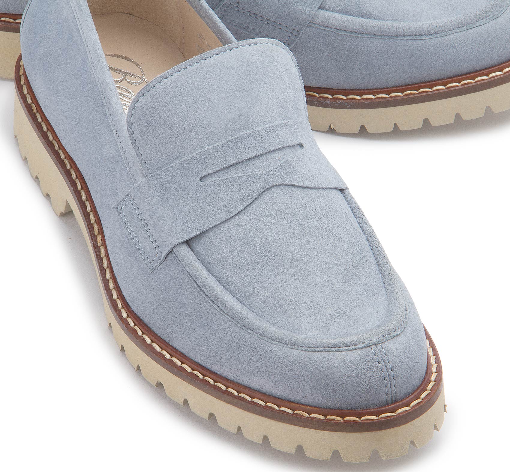 Der Bariello Damen Loafer in Hellblau verkörpert zeitlose Eleganz. Hergestellt aus weichem Nubukleder, verleiht er jedem Outfit einen Hauch von Luxus. Das weiche Leder-Innenfutter sorgt für angenehmen Tragekomfort, den Ihre Füße den ganzen Tag über genießen werden. Ein stilvoller Klassiker, der Ihr Look perfekt abrundet. Setzen Sie auf Eleganz und Qualität mit dem Bariello Damen Loafer.