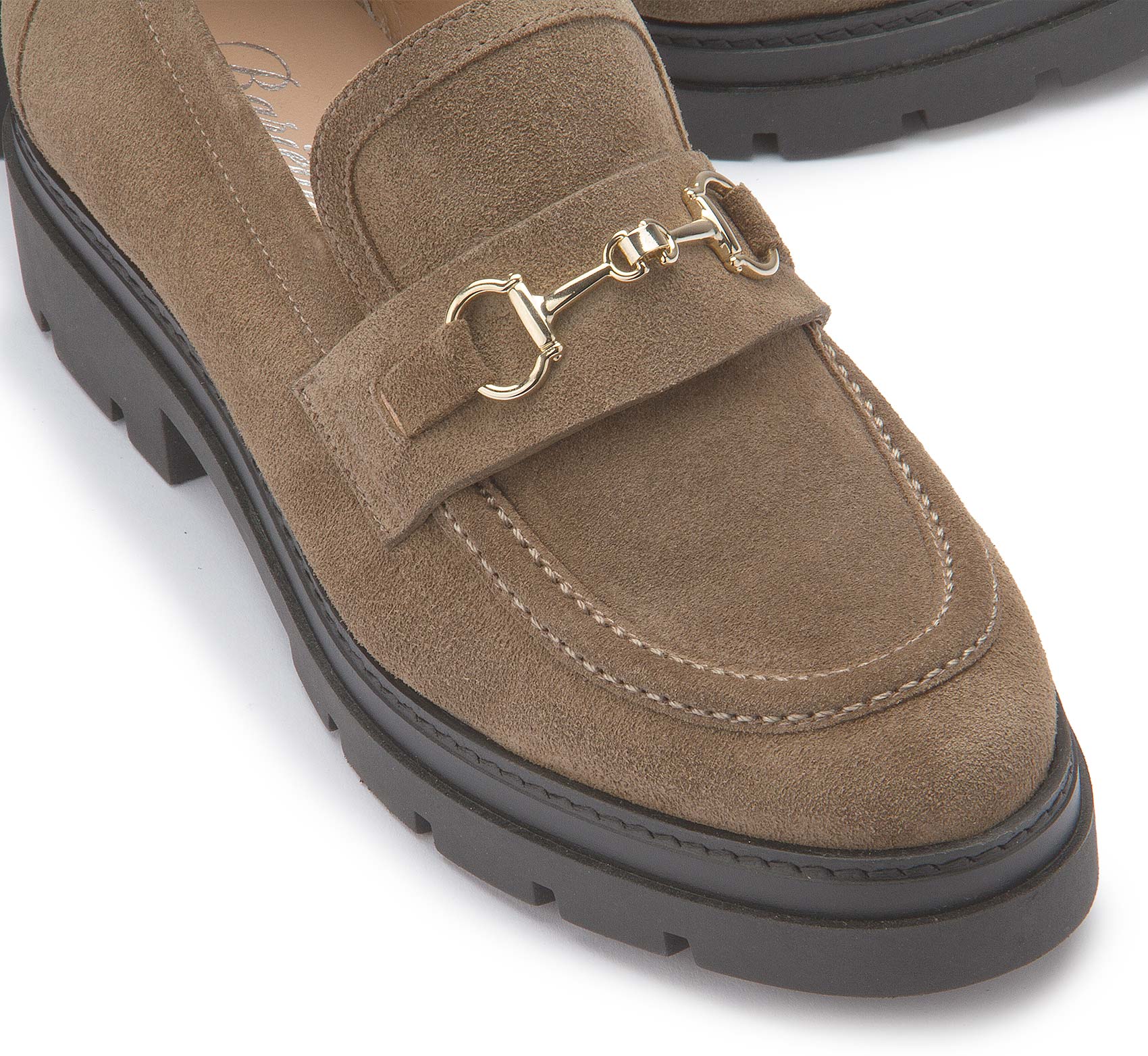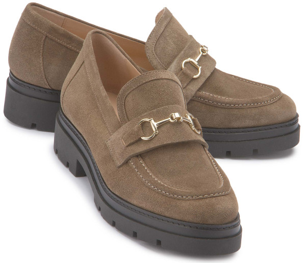 Mit dem Loafer von Bariello bekommt man einen echten Klassiker. Mit seinem zeitlosen Design lässt sich der Loafer mühelos in jedes elegante Outfit integrieren. Das Obermaterial besteht aus Rauleder und wird von einer eleganten Metalltrense ergänzt. Der kleine Absatz rundet den Stil des Halbschuhs charakteristisch ab.