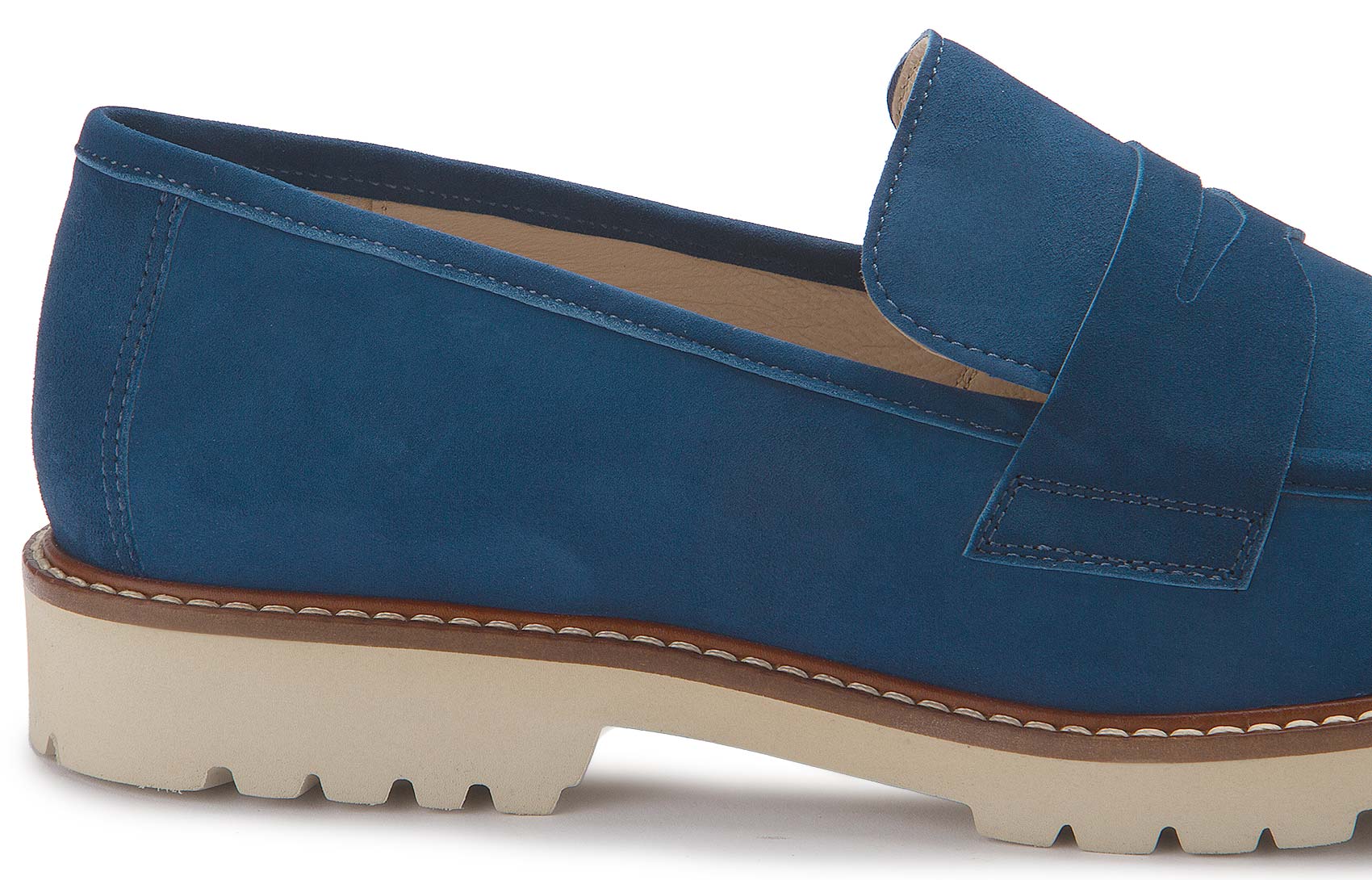 Der Bariello Damen Loafer in sattem Blau verkörpert zeitlose Eleganz. Hergestellt aus hochwertigem Nubukleder, verleiht er jedem Outfit einen Hauch von Luxus. Das weiche Leder-Innenfutter sorgt für angenehmen Tragekomfort, den Ihre Füße den ganzen Tag über genießen werden. Ein stilvoller Klassiker, der Ihr Look perfekt abrundet. Setzen Sie auf Eleganz und Qualität mit dem Bariello Damen Loafer.