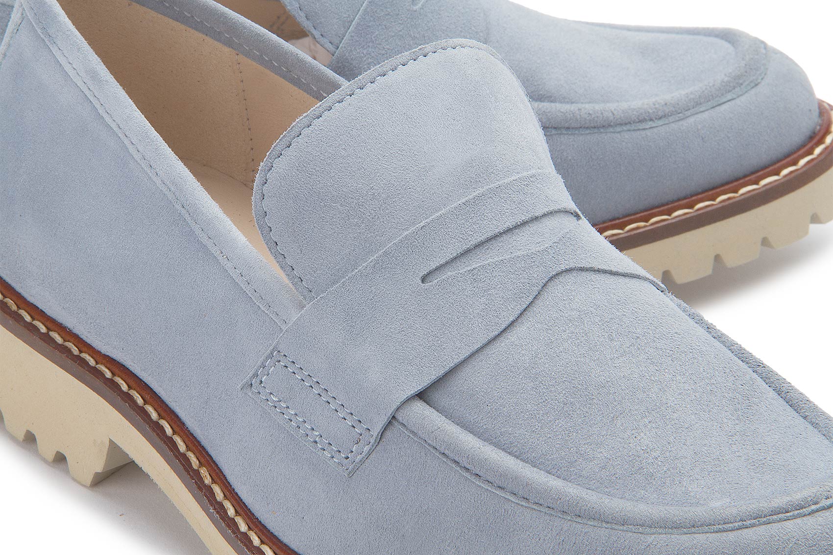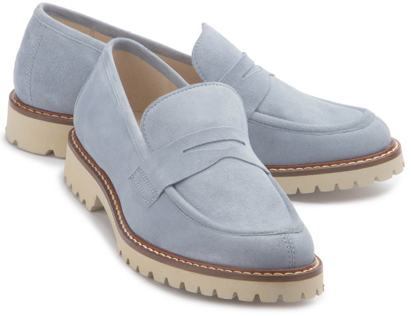 Der Bariello Damen Loafer in Hellblau verkörpert zeitlose Eleganz. Hergestellt aus weichem Nubukleder, verleiht er jedem Outfit einen Hauch von Luxus. Das weiche Leder-Innenfutter sorgt für angenehmen Tragekomfort, den Ihre Füße den ganzen Tag über genießen werden. Ein stilvoller Klassiker, der Ihr Look perfekt abrundet. Setzen Sie auf Eleganz und Qualität mit dem Bariello Damen Loafer.