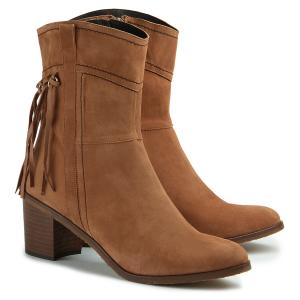 Romantisch und mit einem Hauch von Abenteuer, so präsentiert sich der angesagte Western Style. Stilelemente wie Fransen, samtiges Wild- oder kerniges Glattleder und Ethnoeinflüsse verleihen dieser Mode das gewisse Etwas. Die dominierenden Farben sind sanfte Ocker- und Brauntöne, deren Farbwirkung durch natürliche Rot- und Blaunuancen oder cremiges Weiß verstärkt werden. Neben Accessoires wie Tücher und Ponchos mit Fransen, Gürteln mit getriebenen Schnallen und Schmuckstücken im Vintage Look runden schicke Boots im Western Style das Outfit stilvoll ab.