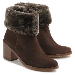 Der mit Kunstpelz verbrämte Schaft bei Stiefeletten in Untergrößen erinnert an die Eleganz von Saloon-Ladys und unterstreicht die exklusive Ausstrahlung. Fashionistas kombinieren hierzu ein mit Spitzen abgesetztes Oberteil, einen Long-Blazer aus Wolle und einen großzügigen Kuschel-Schal mit Ethno-Muster. Diesen können Sie mehrfach um den Hals schlingen oder wie eine Stola attraktiv um die Schulten legen.