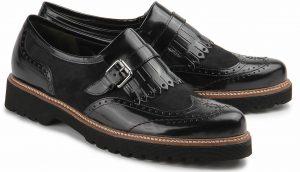 Ein weiteres klassisches Herrenschuhmodell, das hervorragend für Damen passt, ist der Monk. Diese Schnürer werden seitlich mit einer Schnalle geschlossen, die gleichzeitig als dominierendes Zierelement dienen kann und dem Damenschuh eine sehr weibliche Note verleiht. Monks wirken nicht ganz so streng wie andere Modelle und sehen auch aus diesem Grund an Damenfüßen mit Untergröße oder Übergröße extrem schick aus.