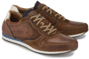 Wer seine Coolness unterstreichen möchte, liegt mit sportlichen Modellen in erdigen Nuancen immer richtig. Das braune Paar aus hochwertigem Leder kommt mit einer genoppten Zickzack-Sohle daher, und erinnert damit ein wenig an typische Fußballschuhe. Die abwechselnde Haptik des Obermaterials bringt Schwung in die zurückgenommene – und dadurch optimal kombinierbare – Farbgebung.