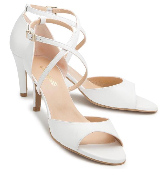 Traumhaft designte Bariello Milano die weißen Sandalen in Übergröße mit Pfennigabsatz, der sechs Zentimeter misst. Die gerundete Lederpartie am vorderen Spann kaschiert große Zehen, ohne schamhaft zugeknöpft zu wirken. Genauso attraktiv sind die gekreuzten Riemen, die schlanke Fußfesseln reizvoll inszenieren. Tipp unter Freundinnen: Die High Heels mit typisch italienischer Eleganz sind bezaubernde Brautschuhe, die noch beim 10. Hochzeitstag im Reisegepäck landen. Denn die Verführungskraft der Sandaletten ist unvergänglich.