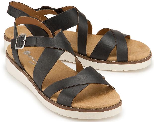 Ausgesprochen luftig und komfortabel setzt Remonte die Idee bei den schwarzen Freizeit-Sandalen in Übergröße um. Die gekreuzten Riemen im vorderen, mittleren und hinteren Bereich haben nicht nur einen kaschierenden Effekt, sondern geben dem Fuß auch einen sicheren Halt. Er forciert den Tragekomfort genauso wie das atmungsaktive Soft-Fußbett, das die Schritte abfedert und Feuchtigkeit absorbiert.