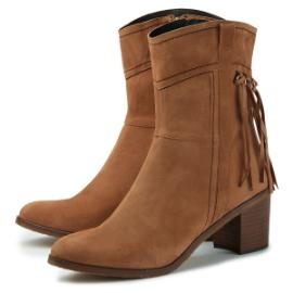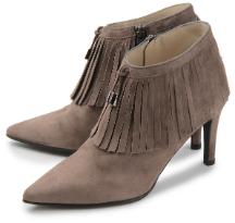 Bariello Milano Stiefelette Veloursleder Ethno-Look Übergröße 584-26Ein wichtiges Element des Ethno-Stils sind Fransen, die ein wenig an den Hippie-Look der Seventies erinnern. Bariello Milano setzt dieses Stilmittel sehr geschickt ein und verbrämt den Schaft von sehr feminin wirkenden Stiefeletten mit weich fallenden Fransen aus edlem Veloursleder.
