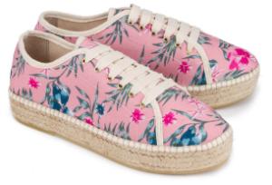 Besonders gelungen wirkt das Gesamtbild zusammen mit monochromem Schwarz oder Weiß. Aber auch wer zu den typischen Sommerkleidchen noch die passenden Schuhe sucht, um nicht all zu brav auszusehen, findet mit einem Paar floraler Espadrilles-Sneaker den richtigen Ton.