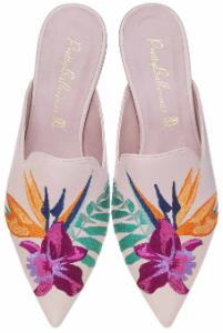 Dieser Schuhtrend ist Ihnen suspekt, da Sie eher auf elegante Zurückhaltung setzen? Zumindest in der Mode müssen Blumen jedoch nicht immer bunt sein. Die Designer halten aktuell auch edle Kreationen bereit, die vor allem die Form in den Vordergrund stellen. Ein anschauliches Beispiel dafür gewähren die Pantoletten in Untergröße aus Italien. Sowohl ihre massive Korksohle als auch ihr Print fügen sich geschmeidig in das beigefarbene Gesamtbild. Tatsächlich schmiegt sich da jedoch eine prachtvolle Rosenstickerei auf das weiche Nubukleder.