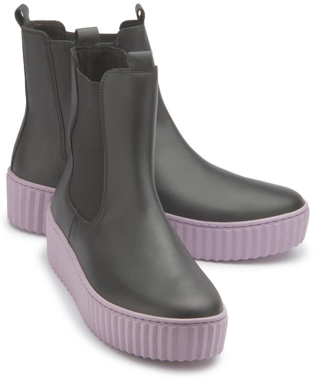 Dabei können diese sich farblich mehr oder weniger vom Material des Schuhs beziehungsweise des Stiefelschafts absetzen. Wer den Trend erst einmal ausprobieren möchte, wählt ein Modell mit farblich nicht so starken Kontrasten. Für Modemutige kann der Gegensatz gerne ein bisschen intensiver ausfallen oder man entscheidet sich für Schuhe mit mehrfarbiger Schuhsohle. In dieser Saison sind Farben wie Lila in unterschiedlichen Schattierungen besonders beliebt, auch Rosa und Grün nehmen modisch an Fahrt auf. Herbstliche Brauntöne verleihen jedem Outfit einen gemütlichen, zur Jahreszeit passenden Look.