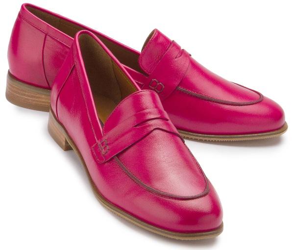 An dieser Karriere rüttelt auch Mut zur Farbe nichts. Das offenbart eine italienische Interpretation der Schlupfschuhe für Damen, die zum Verlieben schön und clever ist: Der intellektuelle Tenor der Schuhform erlaubt es, mit schrill-pinken Eyecatchern im Büro aufzutauchen. Bonus-Tipp für den Smalltalk: Kennzeichnend für die Schuhe zum Reinschlüpfen sind die Aussparungen in den Lederbrücken, die den Schaft diskret dekorieren. Legenden besagen, dass Studis dort das amerikanische Pendant zum Glückspfennig hineinstecken.