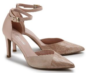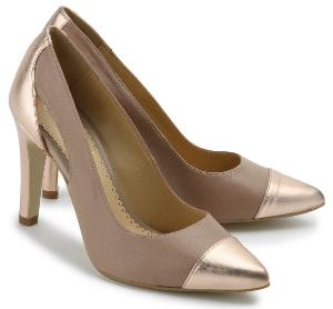 Pumps fein glaenzendes Leder Nude Kupfer Metallic Uebergroesse Pumps spitze Silhouette Pfennigabsatz Fersenriemen Rose Uebergroesse