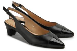 Sling-Pumps Lackkappe Schliesse am Riemchen Schwarz UntergroesseDank ihrer zarten Riemchen sehen die Sommerschuhe für das Büro äußerst schick aus und sorgen für guten Halt. Ein vier-Zentimeter-Absatz verleiht diesen Modellen eine betont weiblich elegante Ausstrahlung.