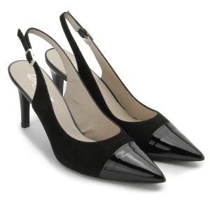 Die feinen Slings von Bariello Milano kommen in klassischem Schwarz und herrlich weichem Nappaleder. Die Kappe ist mit trendigem Lackleder abgesetzt.