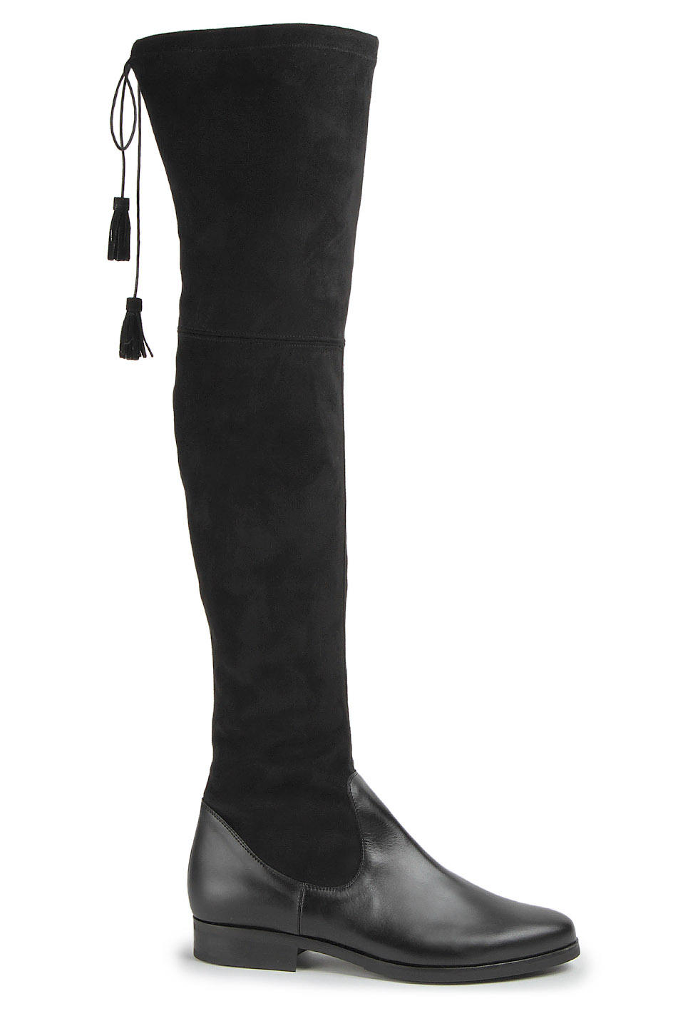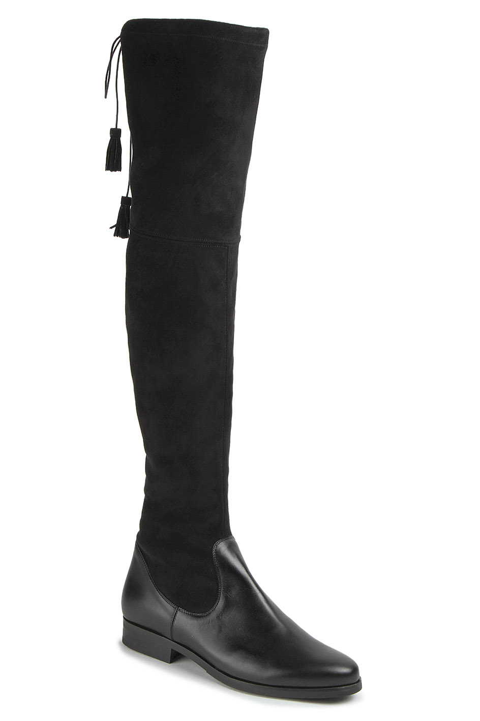 Die flachen Overknee-Stiefel von Bariello Milano veredeln Ihre Outfits gekonnt. Das weiche Veloursleder zieht sich durch das ganze Design und zaubert somit eine perfekte zweite Haut auf Ihre Beine. Am Schaftrand (Textil) kann ein Tunnelzug die Weite leicht regulieren und setzt ihnen ein letztes Finish. Genießen Sie, wie sich das Modell luxuriös an Ihr Bein anschmiegt und Ihre edlen Looks komplettiert!