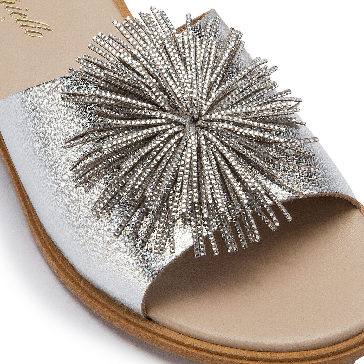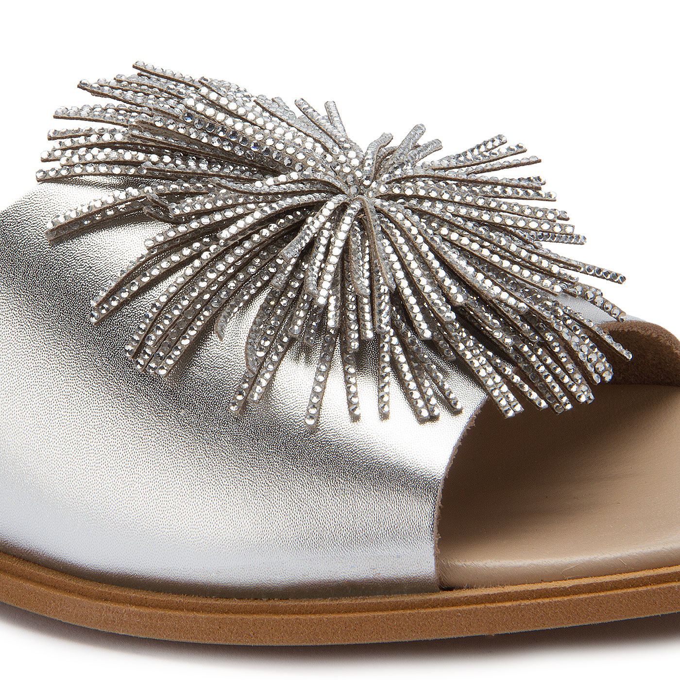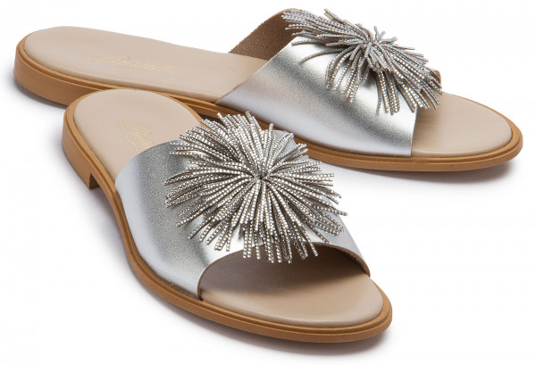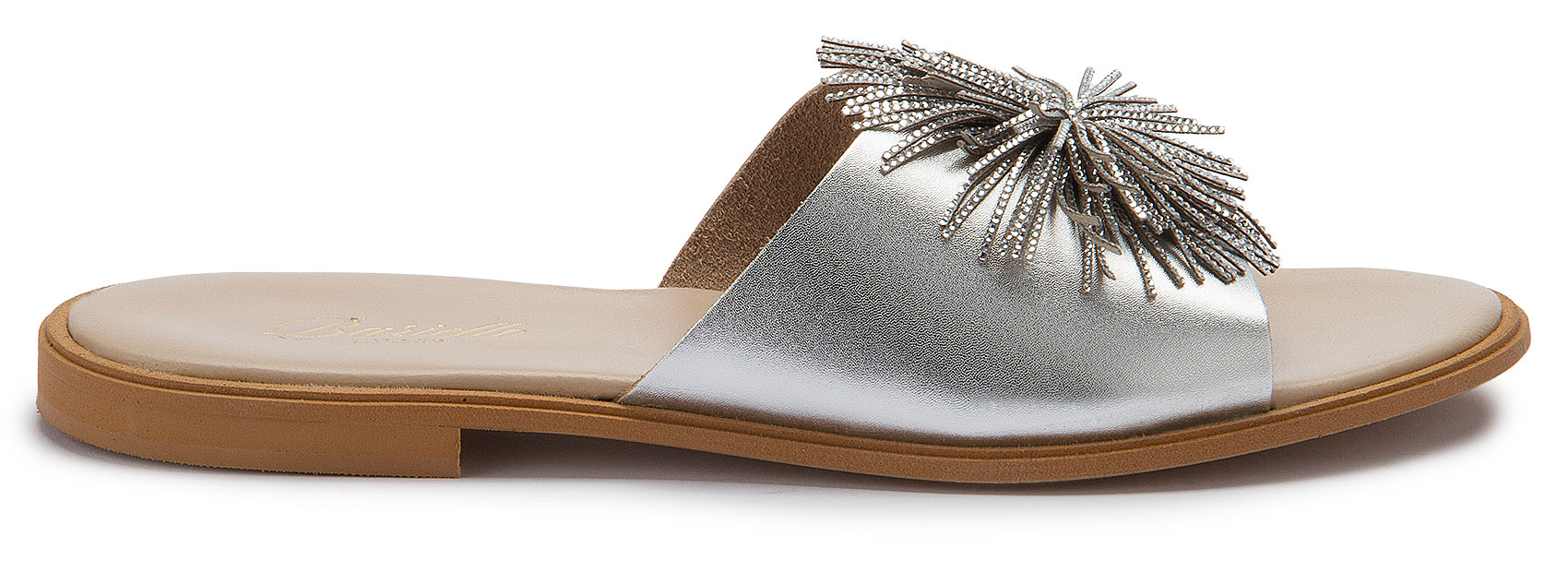 Die Pantolette von Bariello in Silber ist der perfekte Schuh für alle, die Komfort und Stil gleichermaßen schätzen. Hergestellt aus hochwertigem Leder, bietet dieser Schuh nicht nur eine erstklassige Haltbarkeit, sondern auch einen luxuriösen Look. Der silberne Farbton verleiht der Pantolette einen Hauch von Eleganz und lässt sich problemlos mit vielen verschiedenen Outfits kombinieren. Ein weiteres besonderes Merkmal dieser Pantolette ist die auffällige Applikation, die ihr einen verspielten Touch verleiht. Ob beim Stadtbummel oder bei einem entspannten Spaziergang im Park, diese Pantolette wird sicherlich zu einem Favoriten in Ihrem Schuhschrank.
