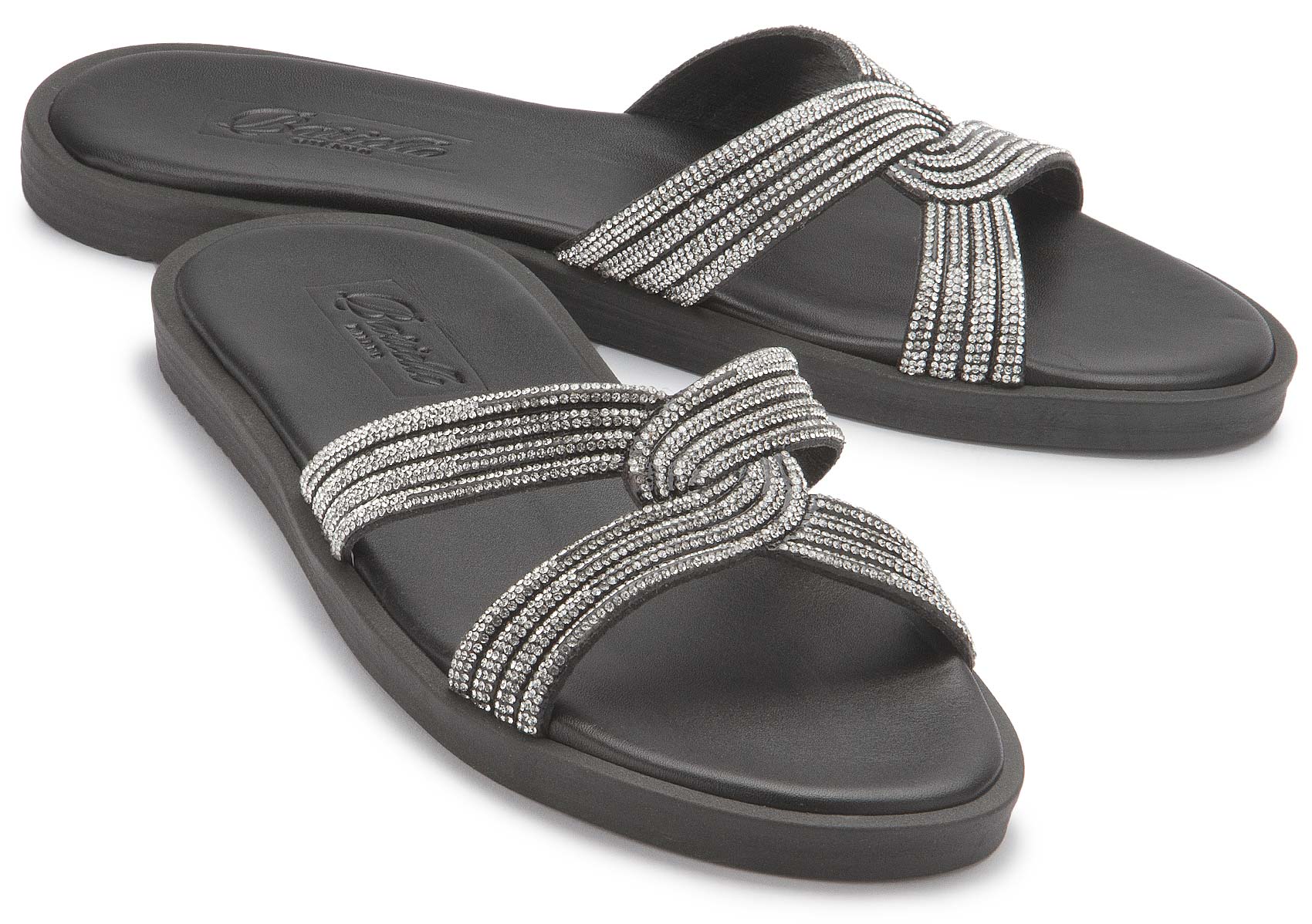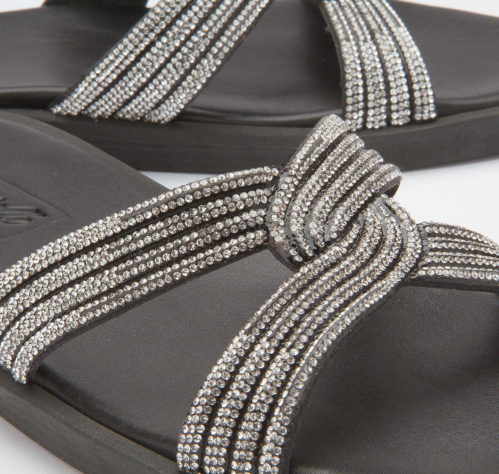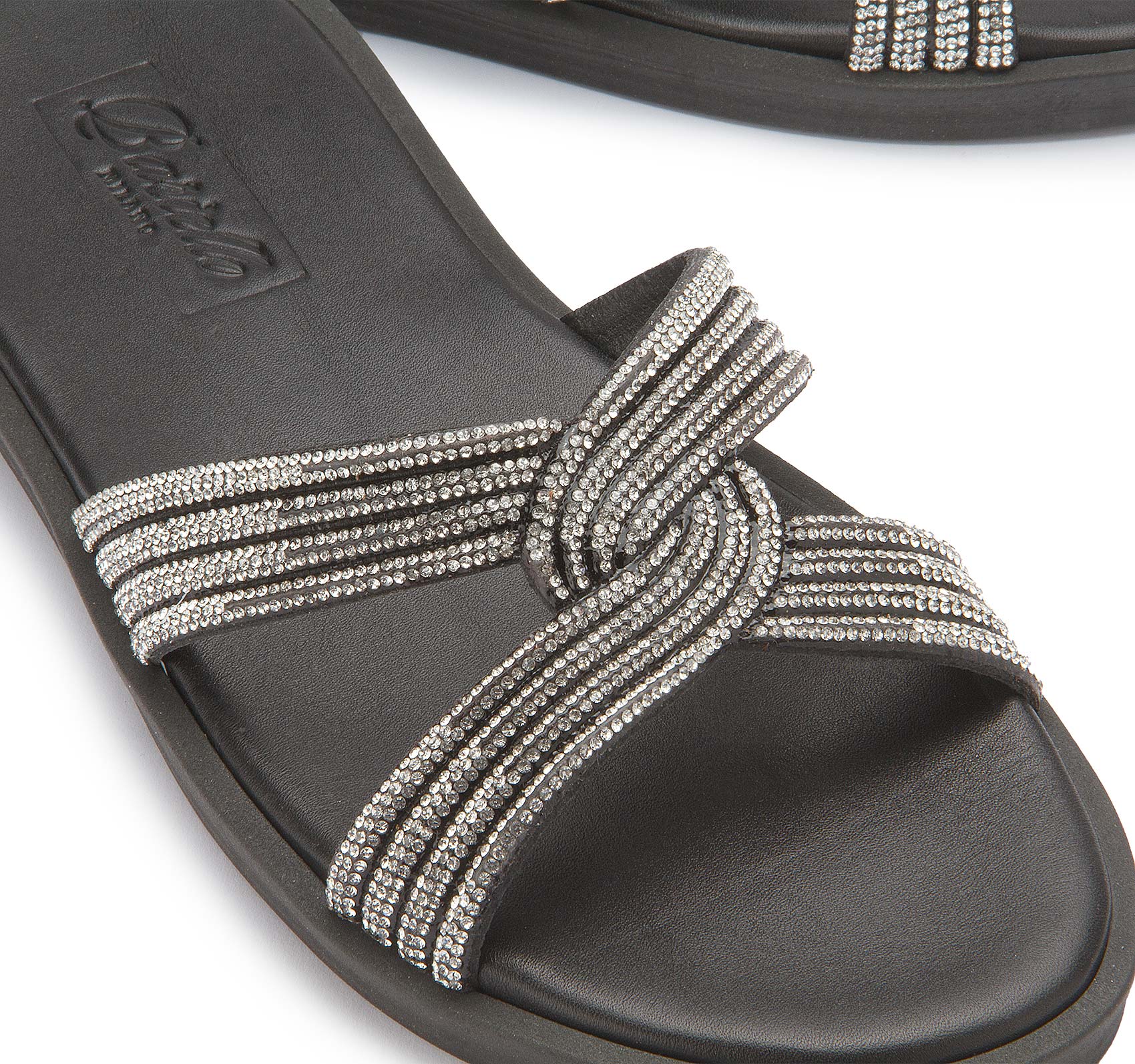 Ein Muss für Trendsetter: Diese eleganten Pantoletten sind ein wahrer Hingucker für jeden Anlass. Das raffinierte Knoten-Design verleiht ihnen einen edlen Touch, während die funkelnden Strasssteine für das gewisse Extra sorgen. Egal ob zu einem schicken Abendessen oder für einen gemütlichen Tag am Strand, mit diesen Pantoletten ziehst du alle Blicke auf dich. Gönn dir diesen luxuriösen Look und genieße den Komfort und Stil dieser einzigartigen Schuhe.