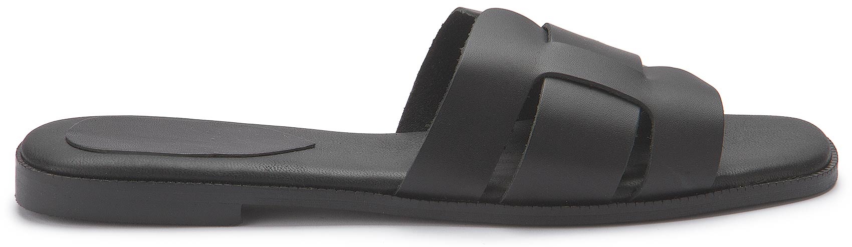 Diese elegante Pantolette in schlichtem Look ist ein echter Allrounder für den Sommer. Das weiche, strukturierte Leder schmiegt sich angenehm an den Fuß, während die moderne Gestaltung der Riemen dem Design eine raffinierte Note verleiht. Die flache Sohle sorgt für bequemen Laufkomfort – ideal für warme Tage in der Stadt oder den Urlaub.