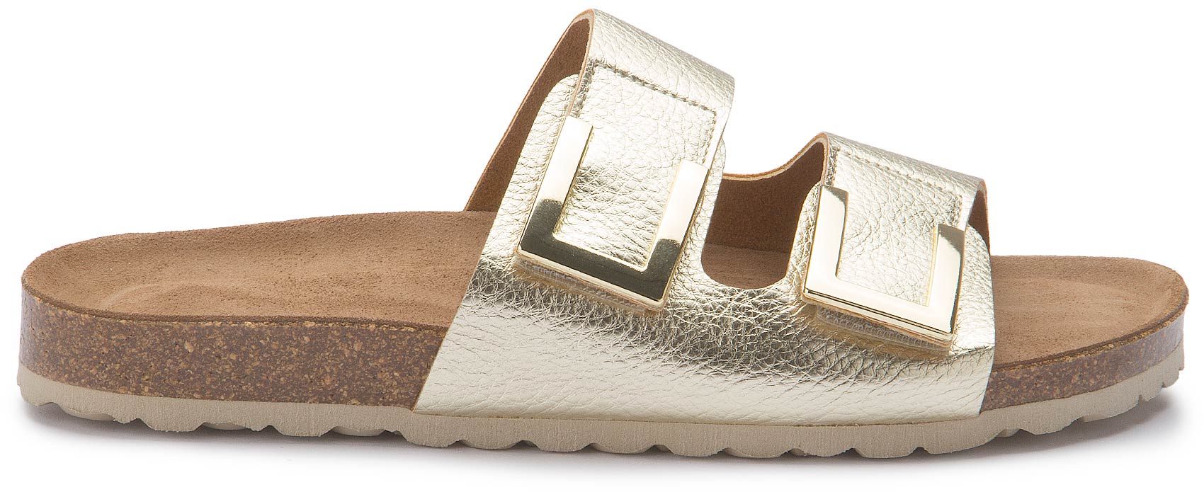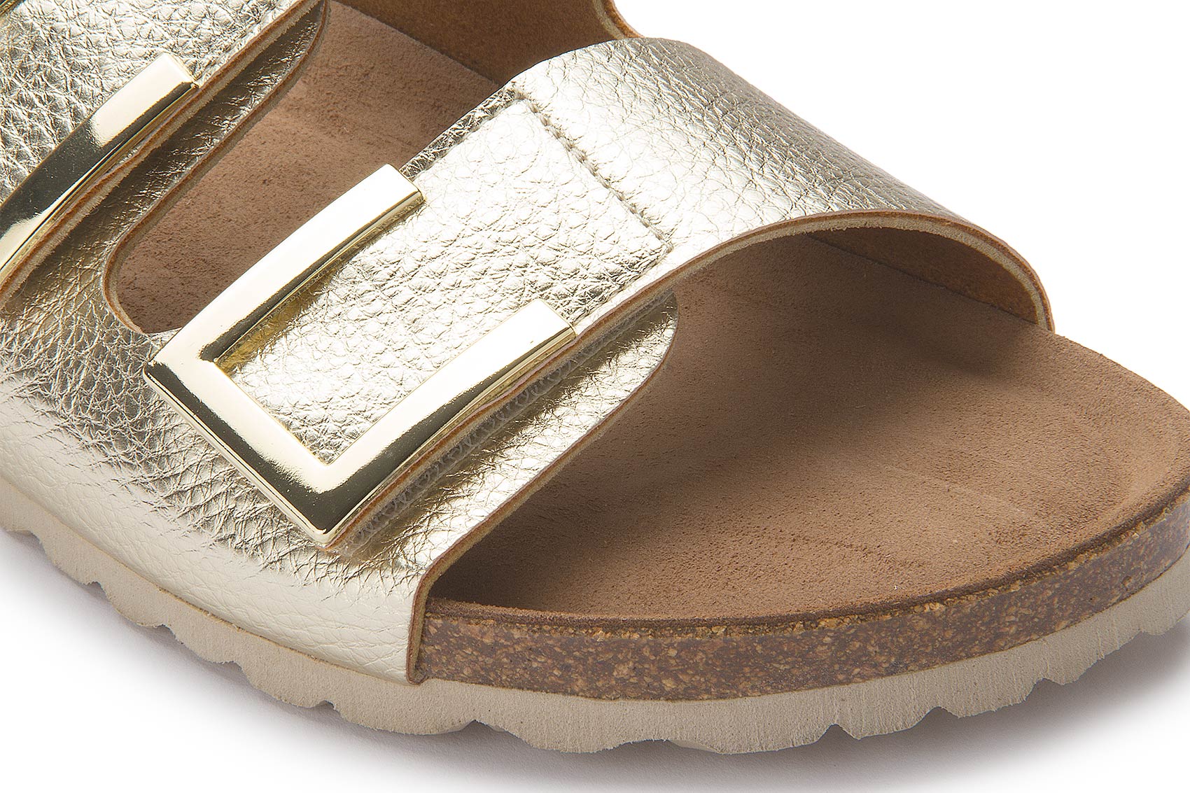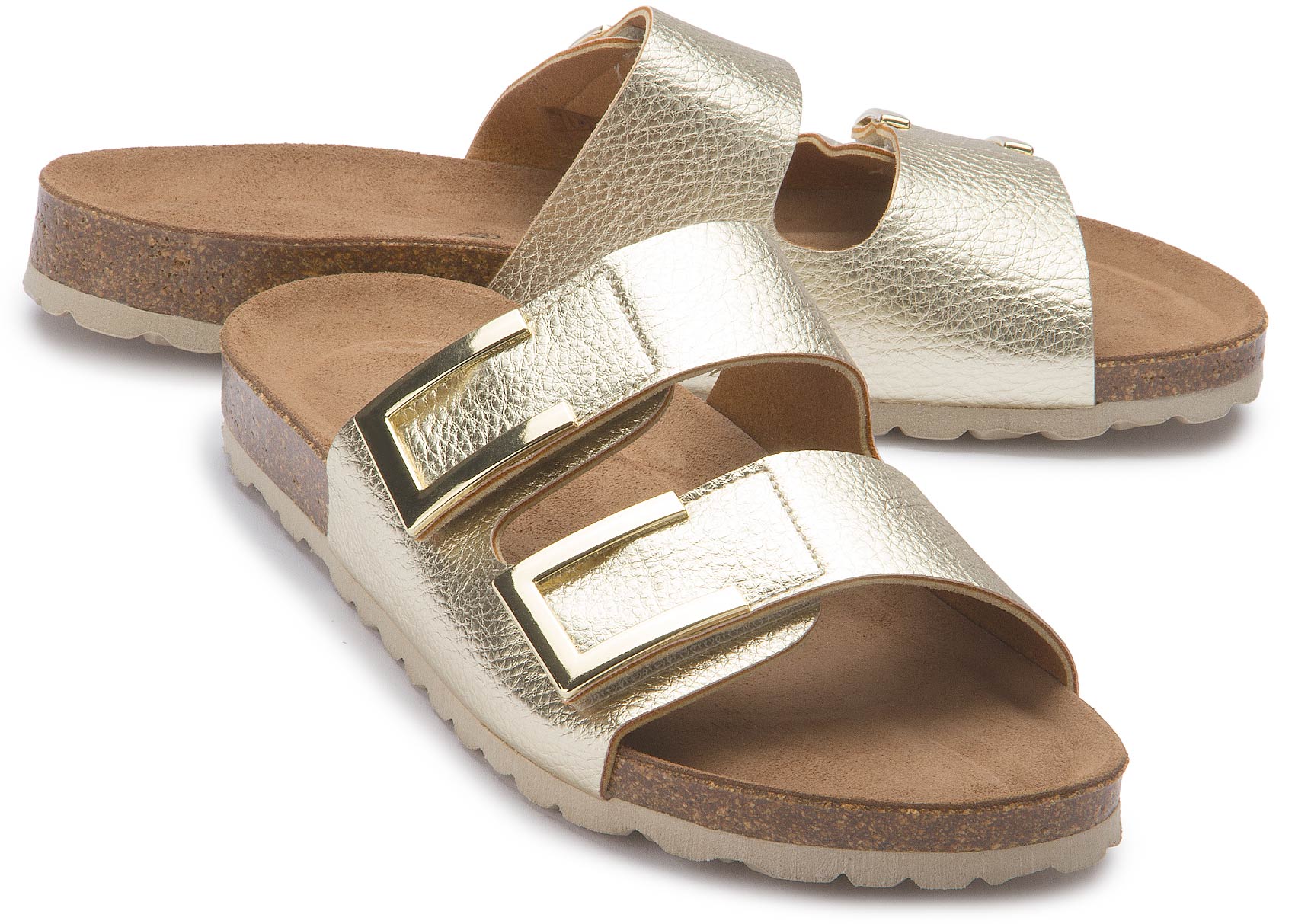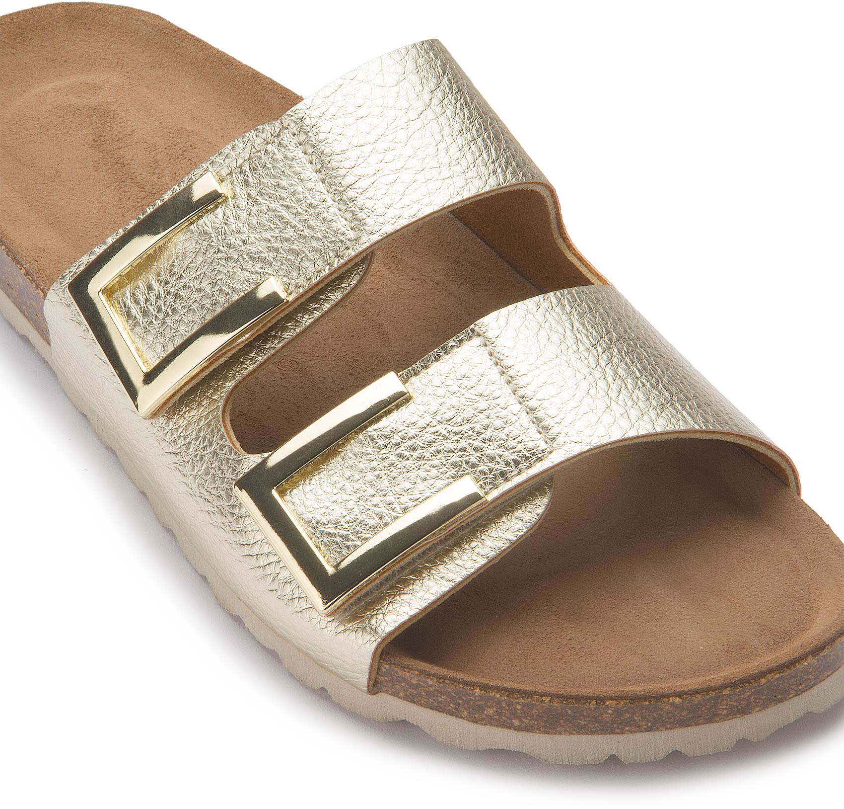 Die modische Pantolette von Bariello in glänzendem Gold überzeugt mit stilvollem Look und durchdachtem Komfort – perfekt für den Sommer. Aus hochwertigem Glattleder gefertigt und mit zwei mit praktischen Klettverschlüssen ausgestattet, lässt sie sich ganz leicht individuell anpassen. Das weiche Lederfutter sorgt auch an warmen Tagen für ein angenehmes, atmungsaktives Tragegefühl.