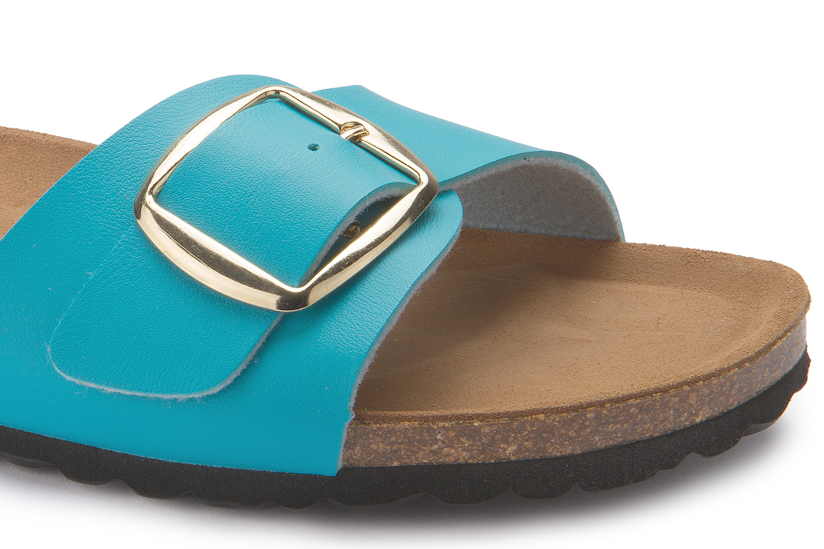Die schlichte Pantolette von Bariello in Türkis kombiniert zeitloses Design mit hochwertiger Verarbeitung – perfekt für die warmen Tage. Aus weichem Leder gefertigt und mit einem verstellbaren Riemen versehen, lässt sie sich individuell anpassen und sitzt angenehm am Fuß. Das Innenfutter aus Leder sorgt auch an sommerlichen Tagen für ein angenehmes, luftiges Tragegefühl.
