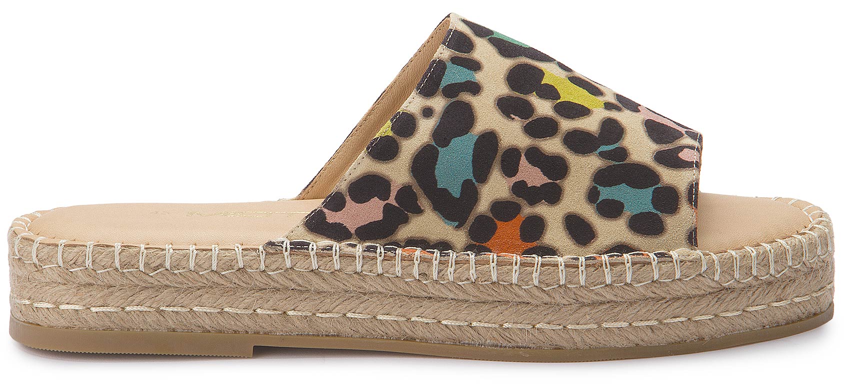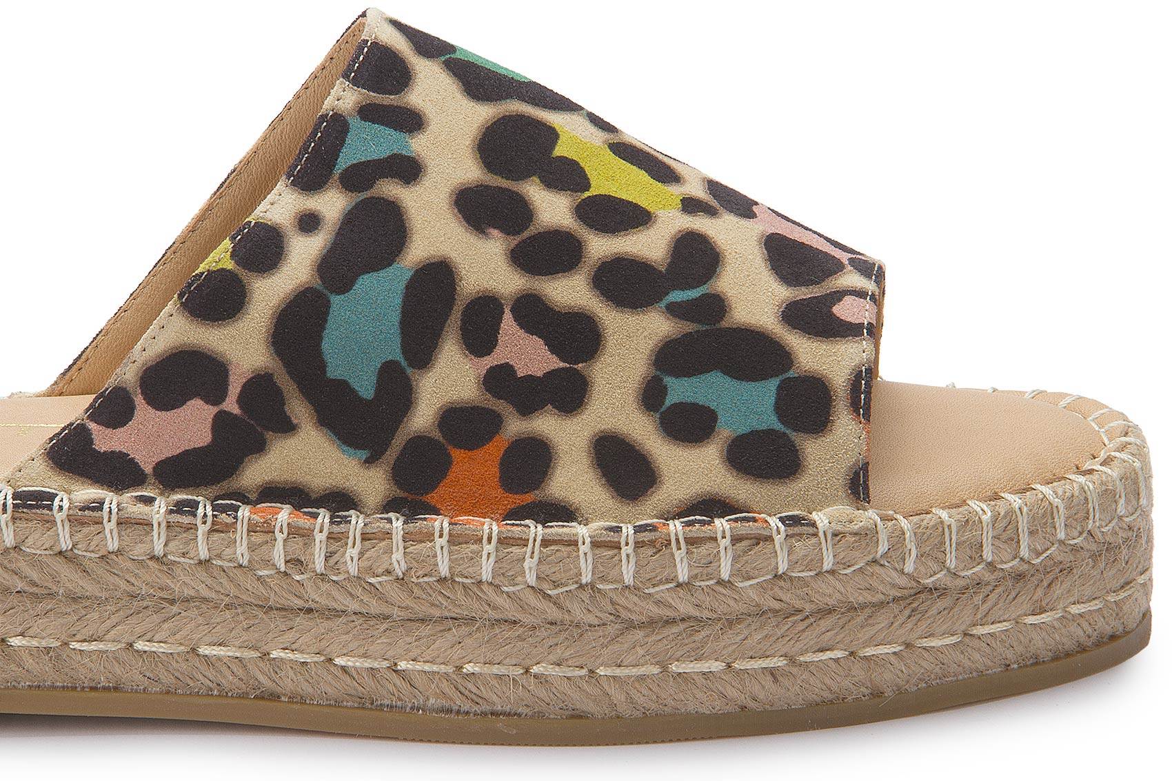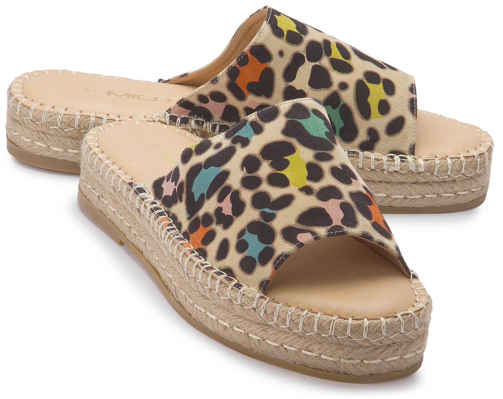 Diese modische Pantolette von Miotti vereint sommerlichen Chic mit einem Hauch Extravaganz. Das mehrfarbige Leo-Muster auf hochwertigem Obermaterial macht sie zum absoluten Blickfang. Der geflochtene Keilabsatz sorgt nicht nur für einen sommerlichen Look, sondern auch für angenehmen Tragekomfort. Ideal für warme Tage und stilvolle Freizeit-Outfits!