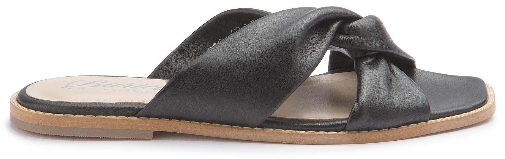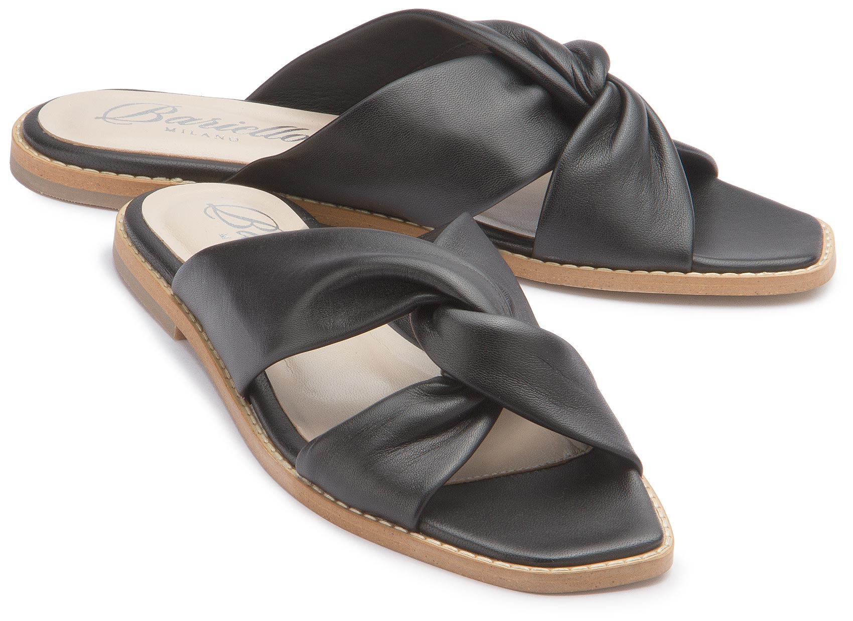 Die eleganten Pantoletten von Bariello Milano bestehen aus anschmiegsamem Leder, das für angenehm hohen Tragekomfort sorgt. Die verknoteten, dekorativen Riemen bieten Ihnen einen guten Halt im stilvollen Damenmodell - Überzeugen Sie sich selbst!