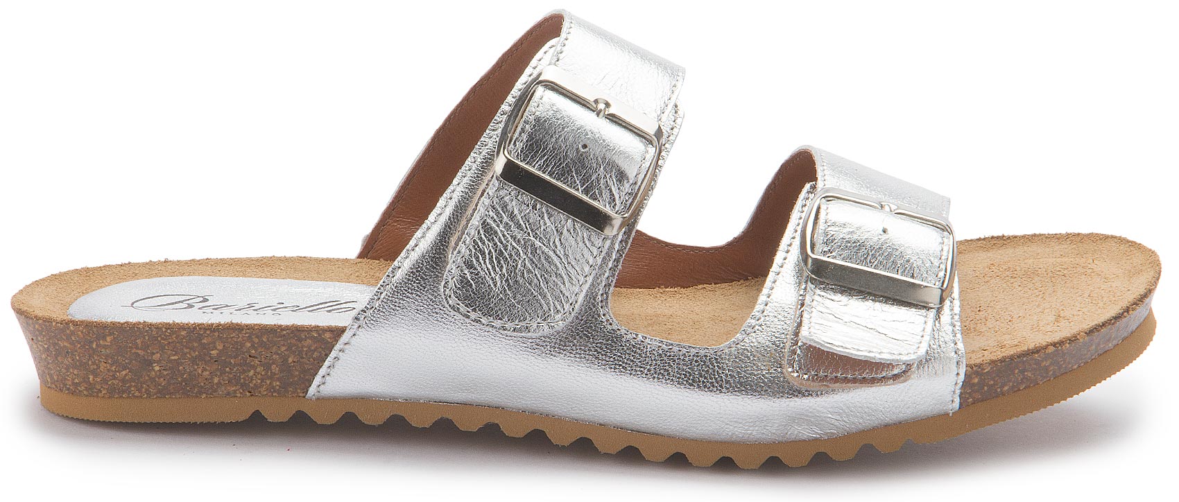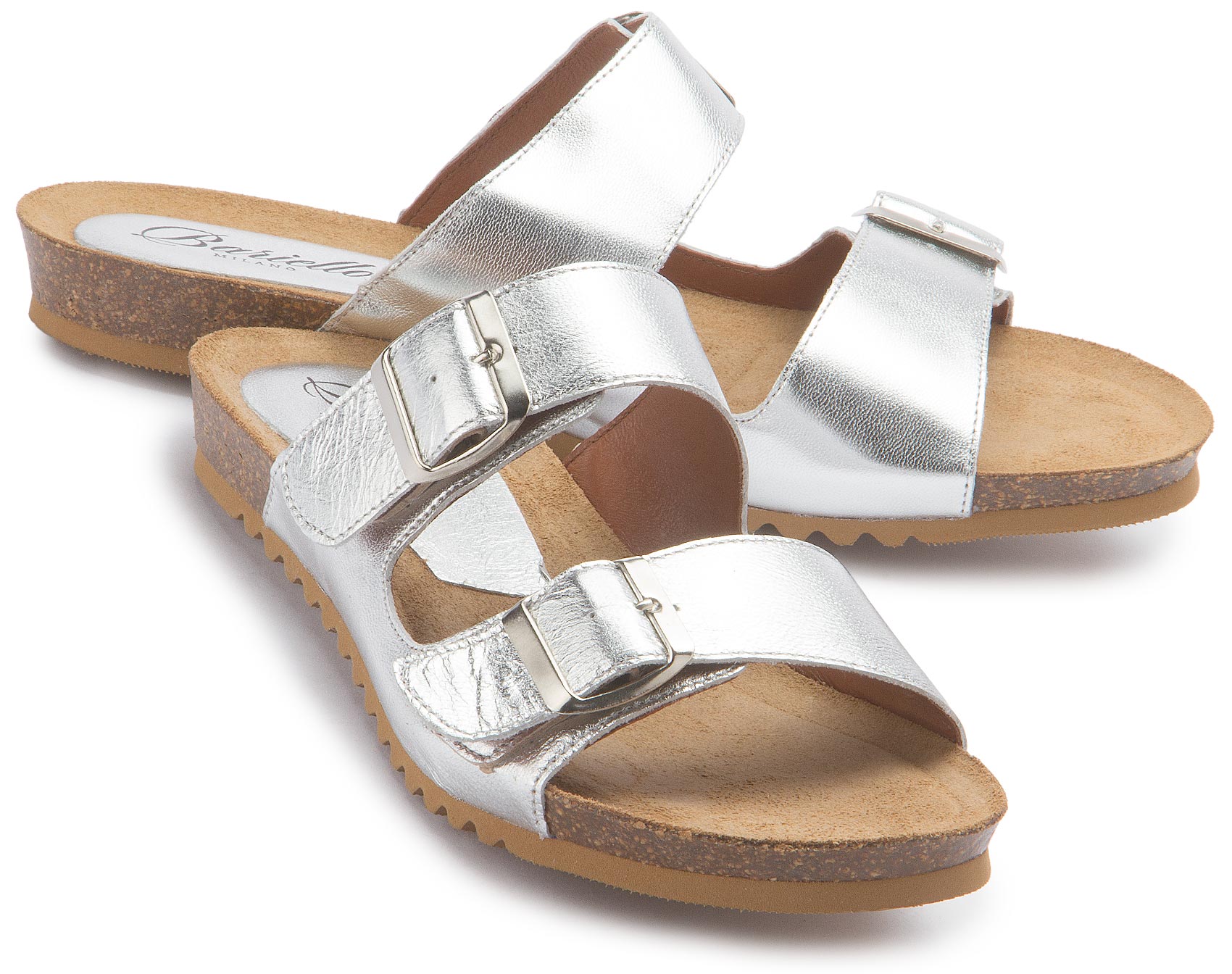 Diese Pantoletten von Bariello Milano sind ein trendstarker Blickfang! Die Riemen schimmern im angesagten Metallic-Look und ergeben ein aufregendes Zusammenspiel. Das vorgeformte Fußbett verspricht traumhaften Tragekomfort. Setzen Sie ein Highlight!