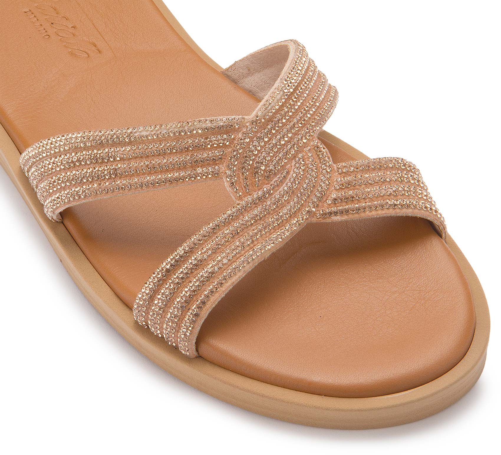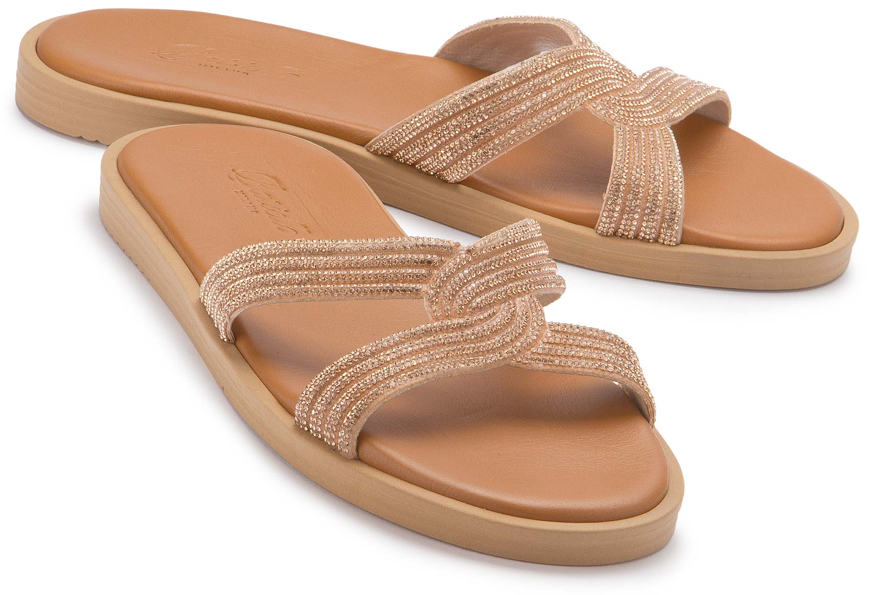 Ein Muss für Trendsetter: Diese eleganten Pantoletten sind ein wahrer Hingucker für jeden Anlass. Das raffinierte Knoten-Design verleiht ihnen einen edlen Touch, während die funkelnden Strasssteine für das gewisse Extra sorgen. Egal ob zu einem schicken Abendessen oder für einen gemütlichen Tag am Strand, mit diesen Pantoletten ziehst du alle Blicke auf dich. Gönn dir diesen luxuriösen Look und genieße den Komfort und Stil dieser einzigartigen Schuhe.