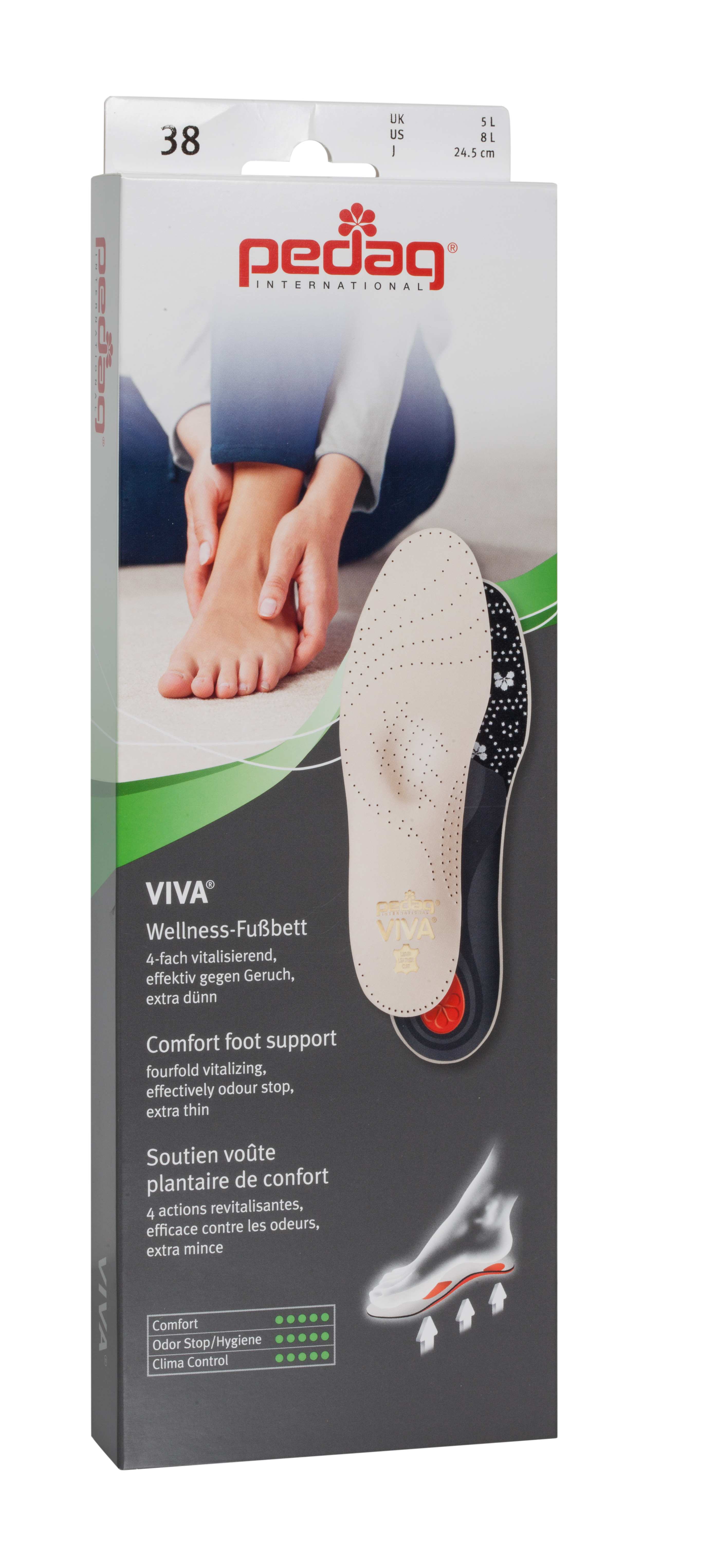 Müde, abgespannte Füße? Nicht mit Ihnen! Die Schuheinlagen pedag VIVA® verwandeln jeden Schuh im Handumdrehen in einen Wellness-Schuh… So anziehend kann ein Fußbett sein.