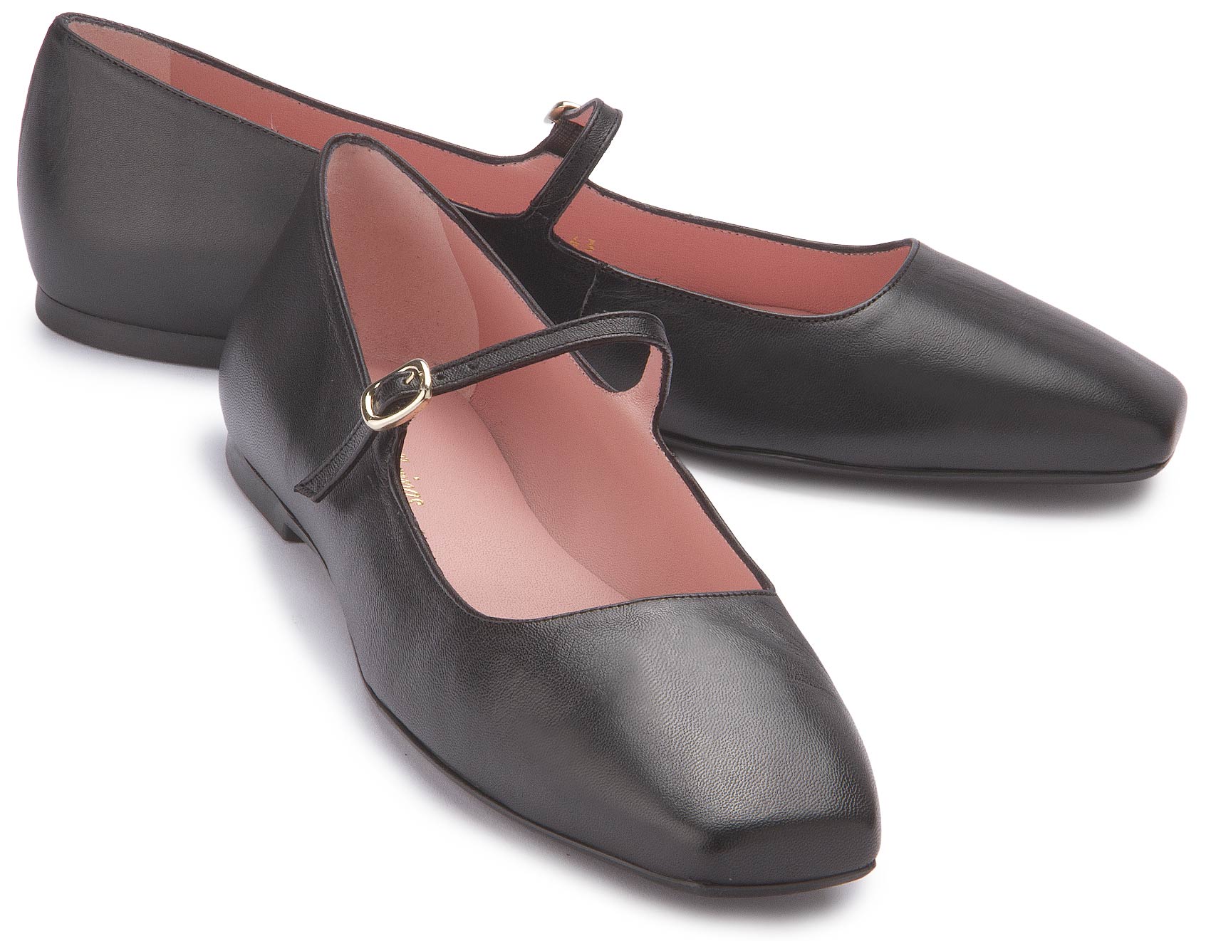 Zeitloser Ballerina von Pretty Ballerinas aus schwarzem Glattleder mit zarter Riemchenschnalle. Die klassische Silhouette trifft auf modernen Komfort und sorgt für sicheren Halt und stilvolle Eleganz. Perfekt für Alltag und besondere Anlässe gleichermaßen.