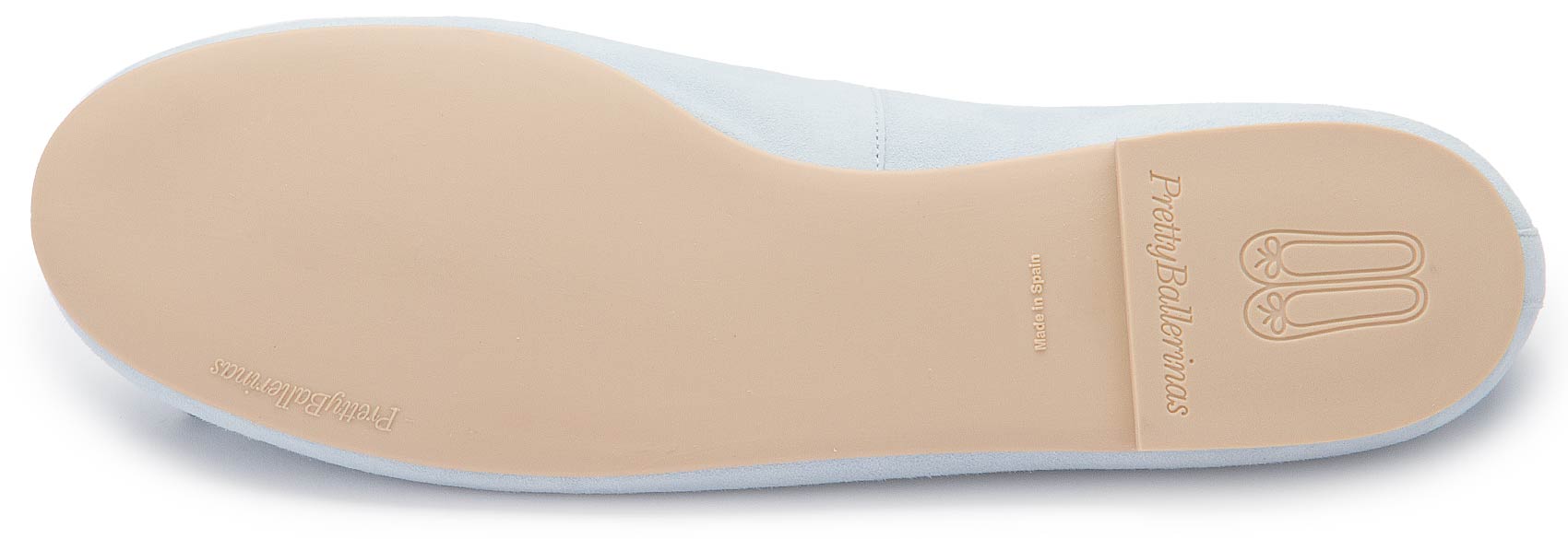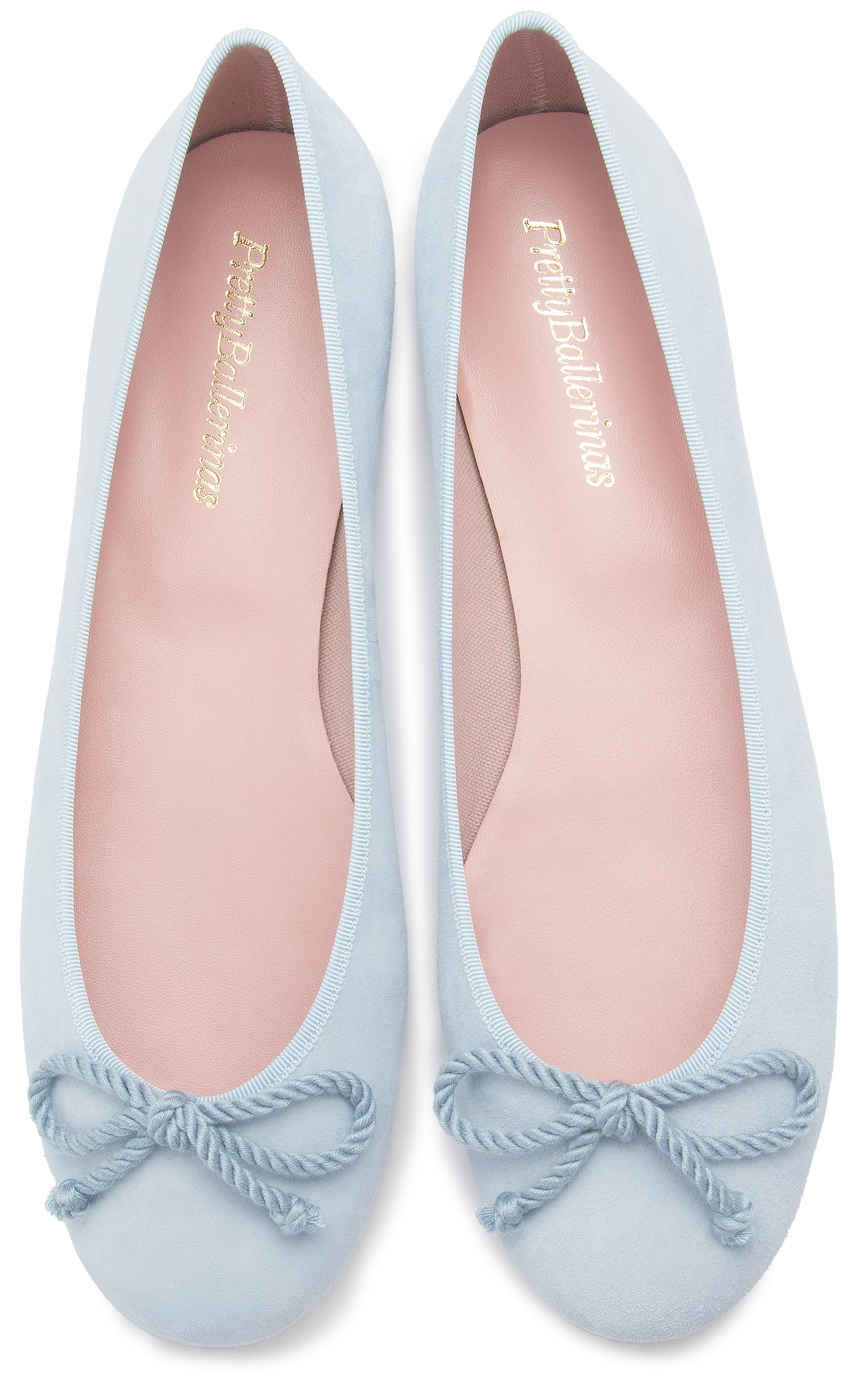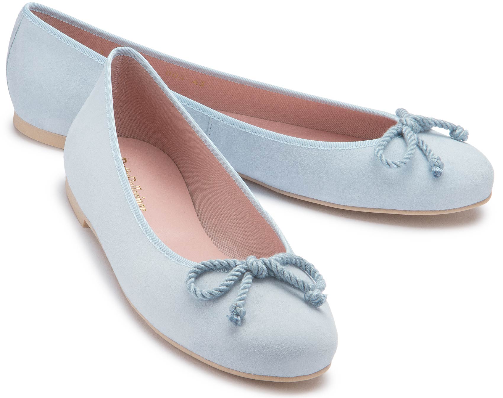 Absolut fein und alltagstauglich zeigt sich dieser edle Ballerina des spanischen Labels Pretty Ballerinas aus weichem Nubukleder in Hellblau mit einer edlen Schleife auf der Vorderkappe.